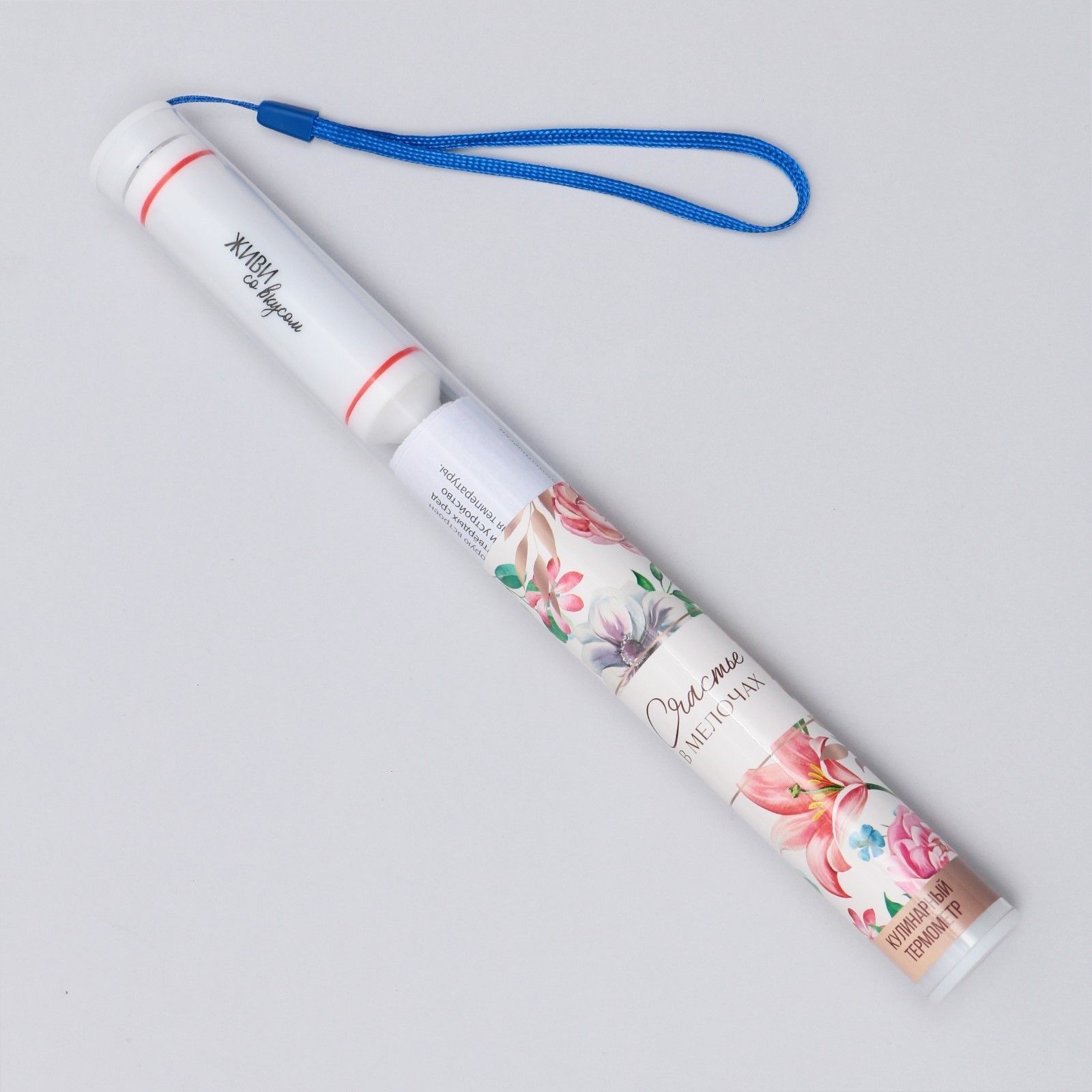Работает от батарейки LR44 (в комплекте) • Вес 85 г • Размеры: 18.5х4.5х2 см • Белый корпус с красными акцентами • Защитный футляр с цветочным принтом для хранения. Материалы: пищевая нержавеющая сталь и термостойкий пластик выдерживают нагрев до 300°C.