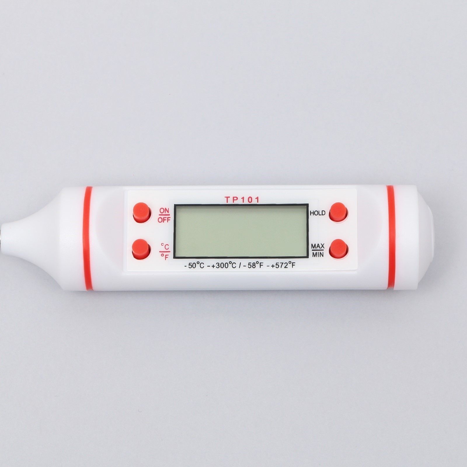 Цифровой термометр с иглой из нержавеющей стали обеспечивает мгновенное определение температуры жидкостей, сыпучих продуктов и мяса. Компактный дизайн с эргономичной ручкой и четким дисплеем делает процесс готовки профессиональным даже на домашней кухне.