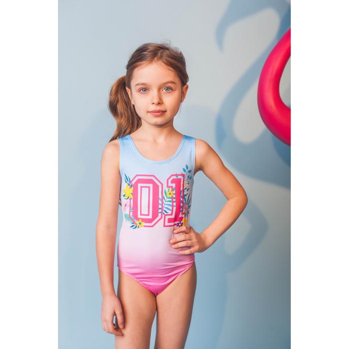 Купальник детский "01" с цветочным принтом, размер 110-116, розово-голубой градиент, полиэстер