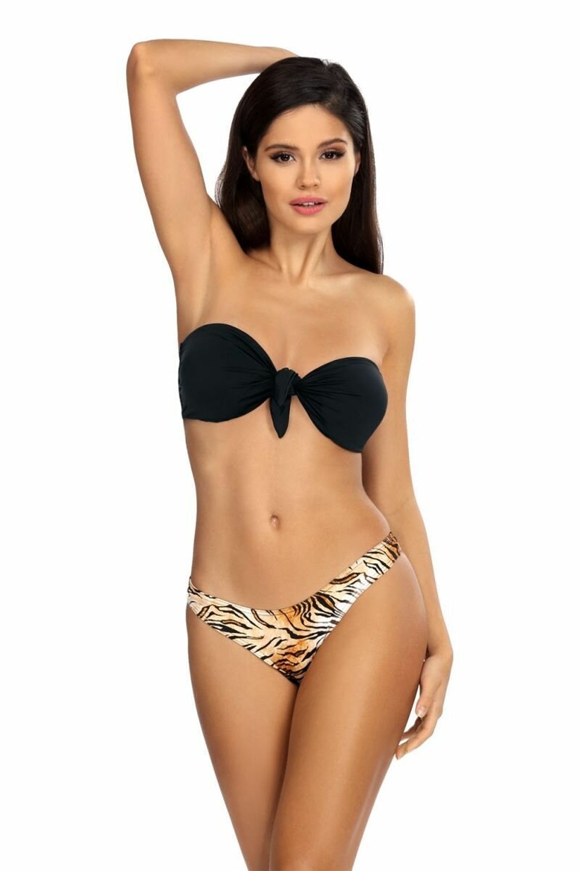 Купальник-бандо черный/тигровый принт, размер 75/38, эластичные чашки