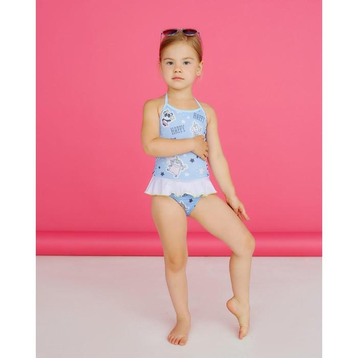 - Яркий дизайн: Светло-голубой цвет с рисунком и рюшами делает купальник привлекательным и запоминающимся.
