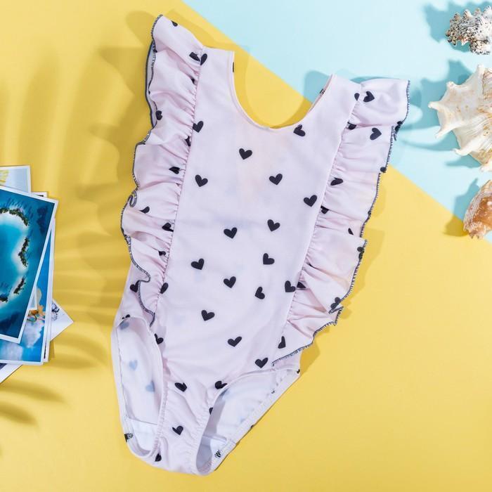 Купальник слитный «Сердечки» для девочки, размер 110-116, полиэстер 100%, рюши