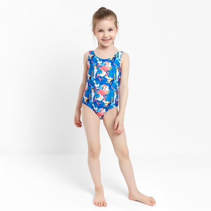 Купальник слитный для девочки "КотМаркот", синий с фламинго, рост 128 см – комфорт и стиль