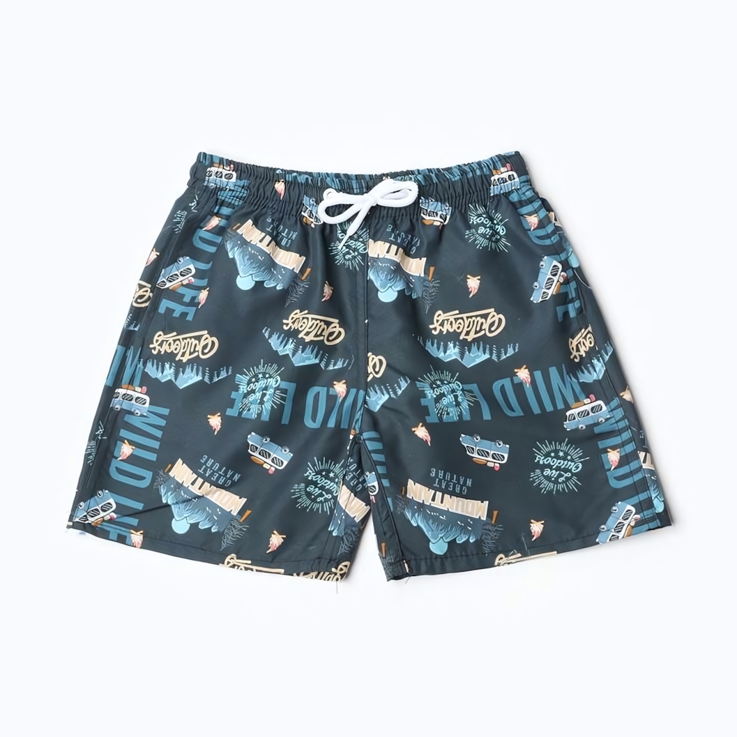 Яркие и удобные купальные трусы станут незаменимым элементом летнего гардероба вашего ребёнка. Эмоциональный и динамичный принт с горами, автомобилями и надписями создаёт атмосферу приключений, вдохновляя на активный отдых у воды. Они подходят для плавания в бассейне, отдыха на пляже или игр в воде на даче.