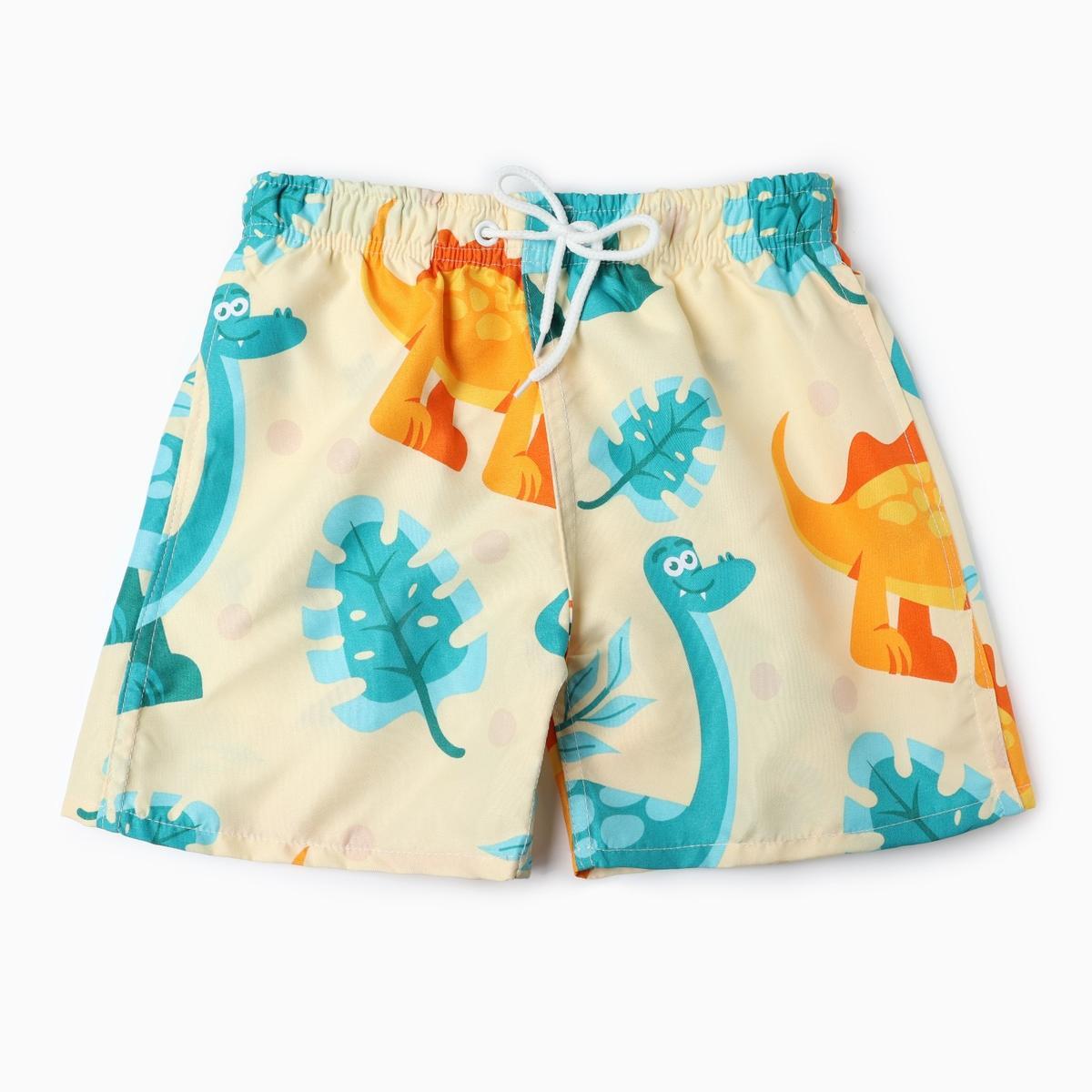 Купальные трусы детские «тропики», рост 122‑128 см, бежево‑синий дизайн, полиэстер 100 %