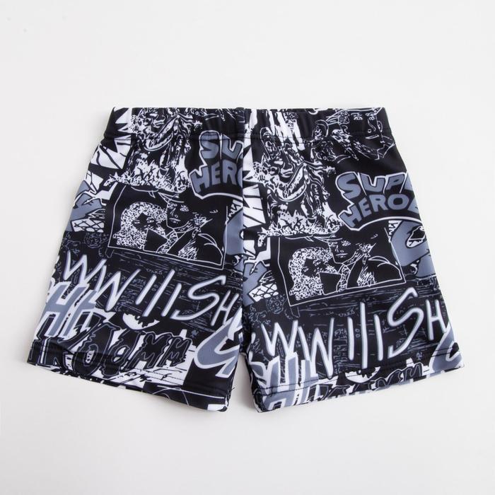 Купальные трусы для мальчика «Super hero», рост 86‑92 см, чёрно‑белый принт, нейлон + эластан, эластичный пояс
