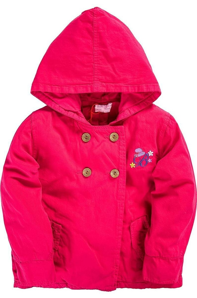 Куртка-парка для девочки, размер 110, ярко-розовая, хлопок 100%, пуговицы, вышивка, капюшон