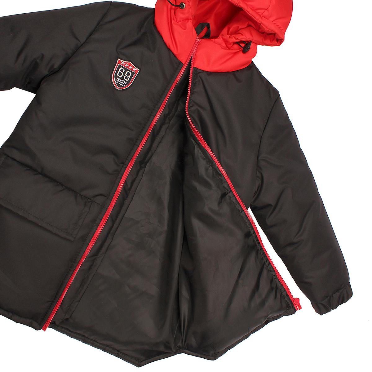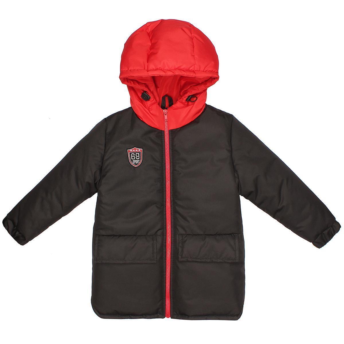 Куртка демисезонная для мальчиков 104‑110 «Ириска» черный/красный, дюспо, утеплитель синтепон 200 г, капюшон с утяжками