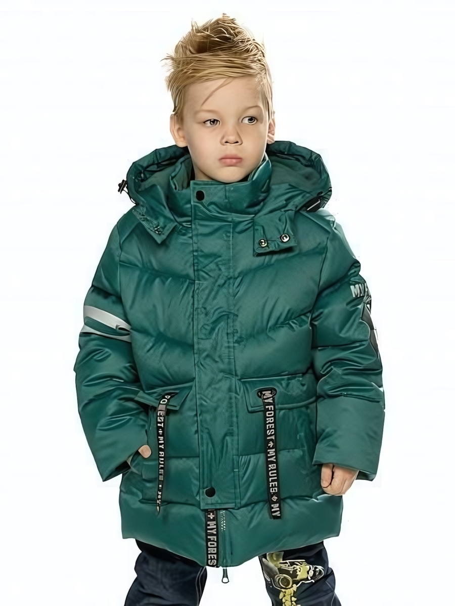 Куртка для мальчика с утеплителем экопух, теплый зимний вариант, размер 110, цвет зелёный, капюшон и молнии