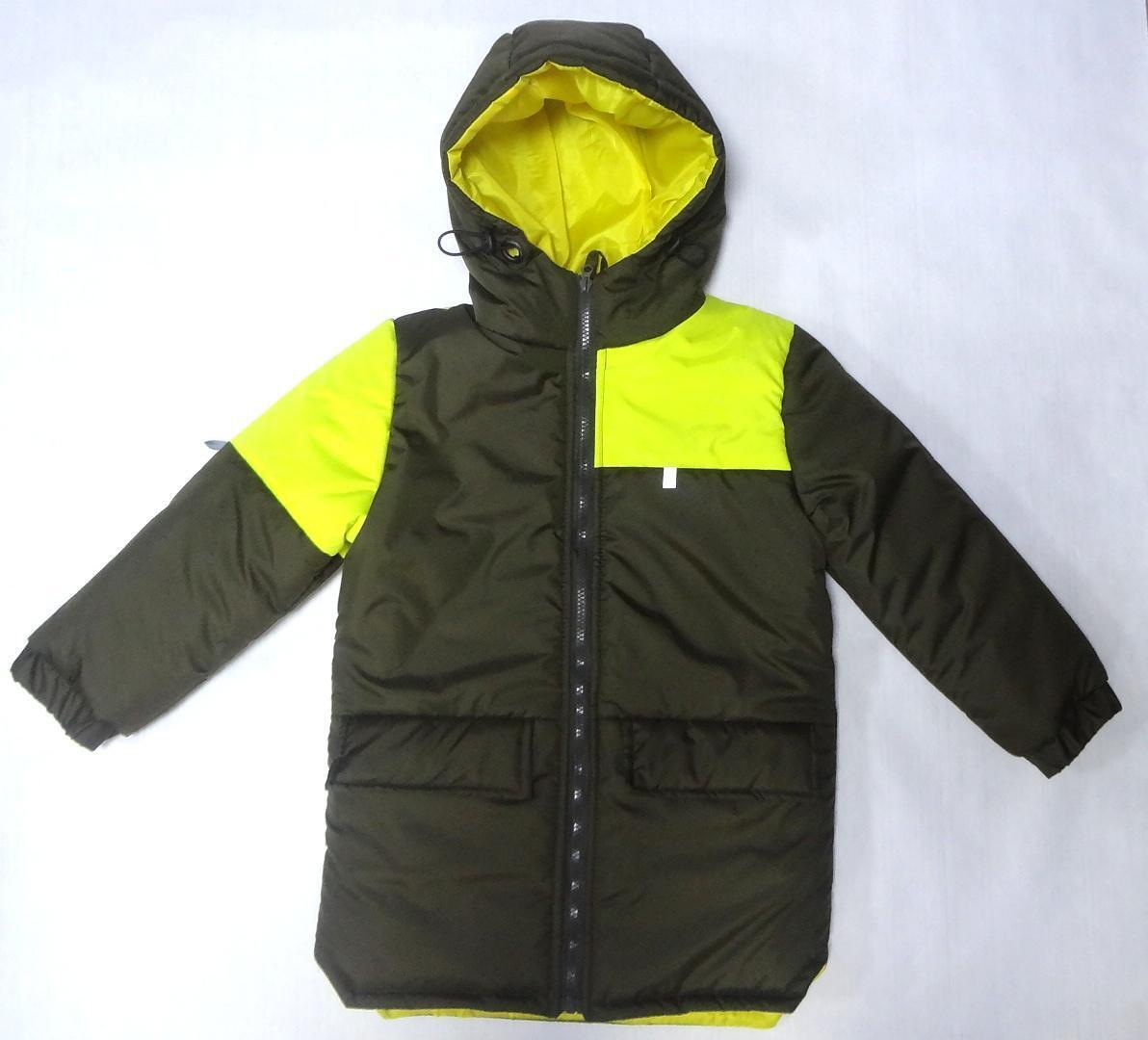 Куртка мальчиковая утепленная, дюспо, размер 110-116, флисовая подкладка, темно-зеленый с желтым