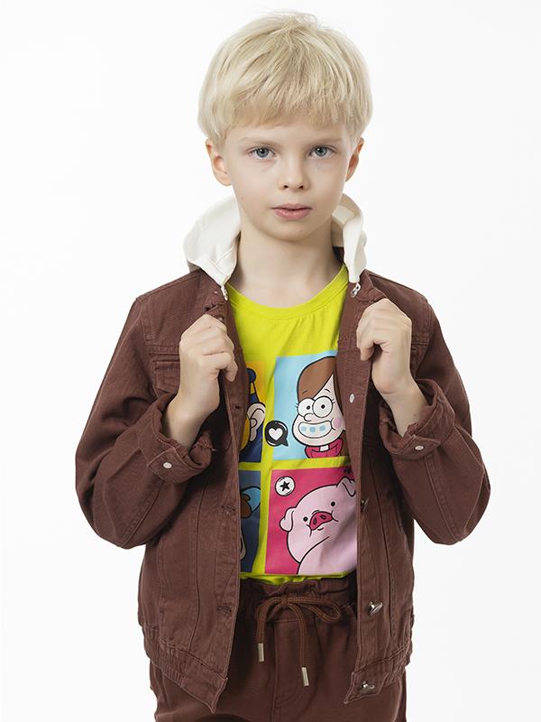 разноцветный принт — отгружается один товар, оттенок определяется случайным образом. Джинсовая ткань обеспечивает долговечность, а аккуратный крой создаёт комфорт при движении. Эта куртка — практичный выбор для родителей, которые хотят совместить стиль и функциональность в повседневной детской одежде.
