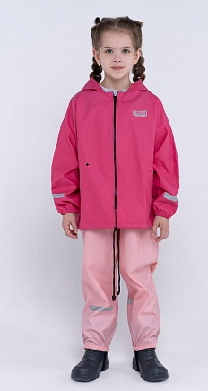 Размер 140 подходит для детей примерно 9–10 лет (ориентировочно, в зависимости от роста). Светло-серые светоотражающие полосы на рукавах и вставки на штанах (если использовать комплектом) делают ребёнка заметным в полумраке. Отгружается куртка, цвет — ярко-розовый, как на фото.