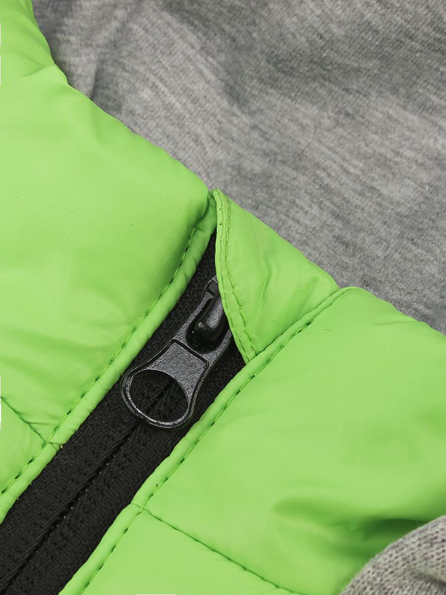 Размер: талия 110 мм, длина 75 см, ширина рукава 22 см. Цвет: ярко-зелёный (салат) с серыми вставками, черный капюшон. Материал: стёганый полиэстер со специальной структурой, мягкая внутренность из трикотажа. Производитель: АксАрт, Россия.