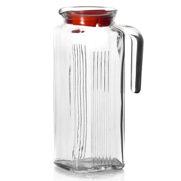 Строгий дизайн и функциональность делают этот кувшин универсальным выбором как для повседневного использования, так и для праздничных мероприятий. Прозрачное стекло позволяет легко контролировать содержимое, а яркая крышка добавляет современный акцент.