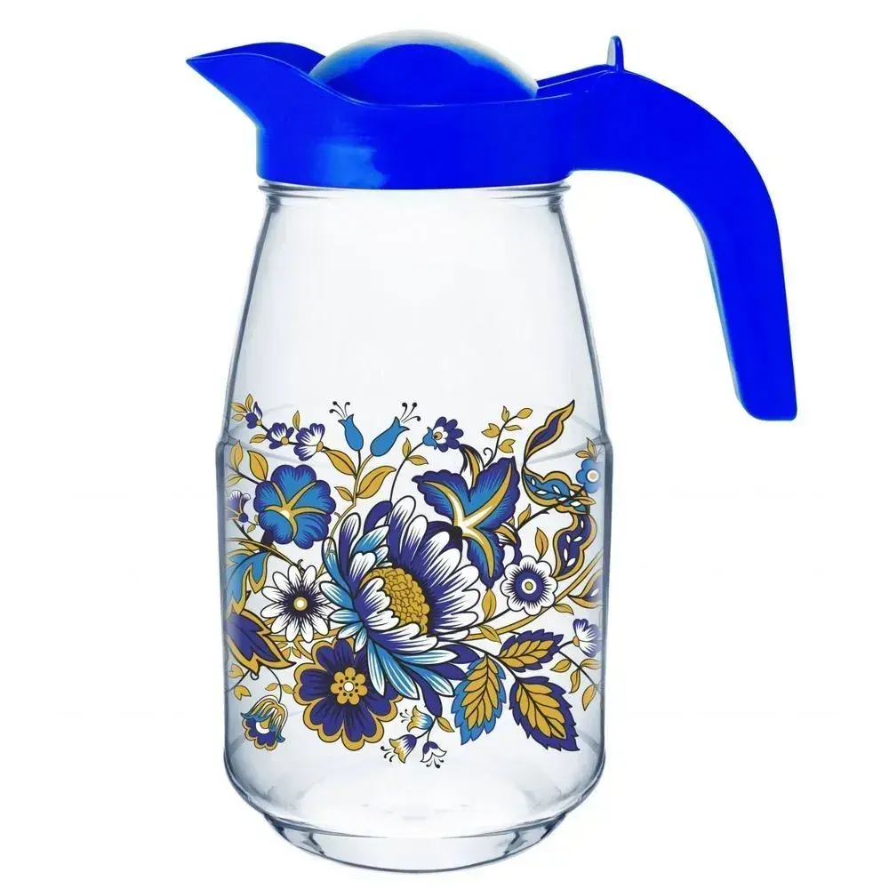 Кувшин декоративный 1,5л с крышкой, пластик, цветочный узор с птицами, синие акценты