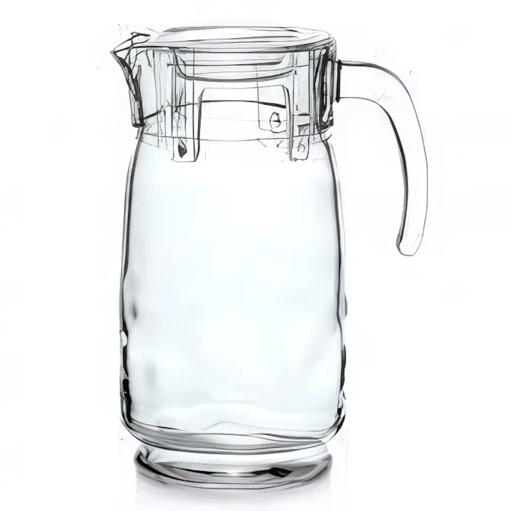 Кувшин изготовлен из высококачественного прозрачного стекла с гладкой поверхностью, устойчивой к царапинам. Ручка обеспечивает удобный захват, а крышка с защелкой надежно защищает содержимое от пыли и насекомых.