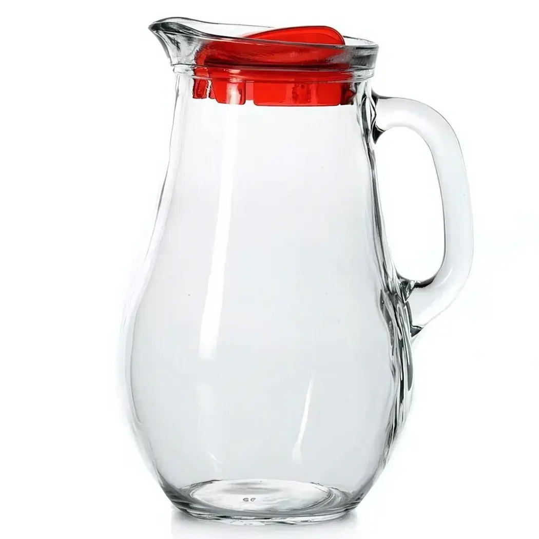 Кувшин стеклянный 1850мл 'Бистро', с красной крышкой, удобная ручка