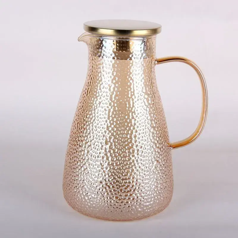 Металлический кувшин «Коралл» сочетает в себе изысканный дизайн и практичность. Чеканный узор в виде кругового орнамента создаёт эффект ручной работы, а золотистые акценты добавляют торжественности. Идеальный выбор для подачи напитков, украшения стола или использования в качестве стильного элемента интерьера.