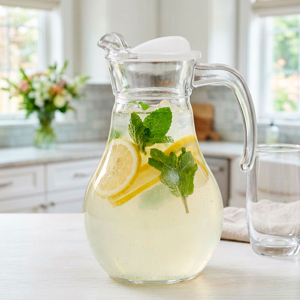 Кувшин объемом 1 литр из стекла с прозрачной крышкой станет незаменимым аксессуаром для сервировки напитков. Его стильный и лаконичный дизайн прекрасно впишется в любой интерьер, добавляя нотку элегантности и комфорта. Благодаря удобной ручке, наливать напитки станет проще и приятнее, а прозрачный материал позволяет видеть содержимое, что особенно удобно при подаче на стол.