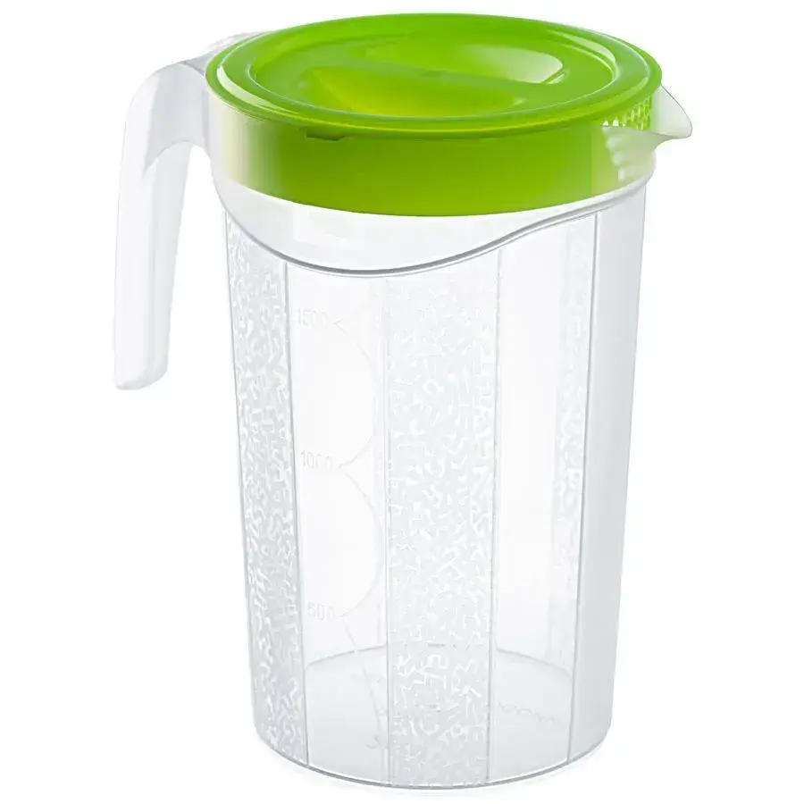 Прозрачный пластиковый кувшин объемом 2 литра станет вашим надежным помощником на кухне. Идеален для воды, соков, компотов или молока – сохраняет свежесть и позволяет удобно наливать напитки благодаря продуманной конструкции.