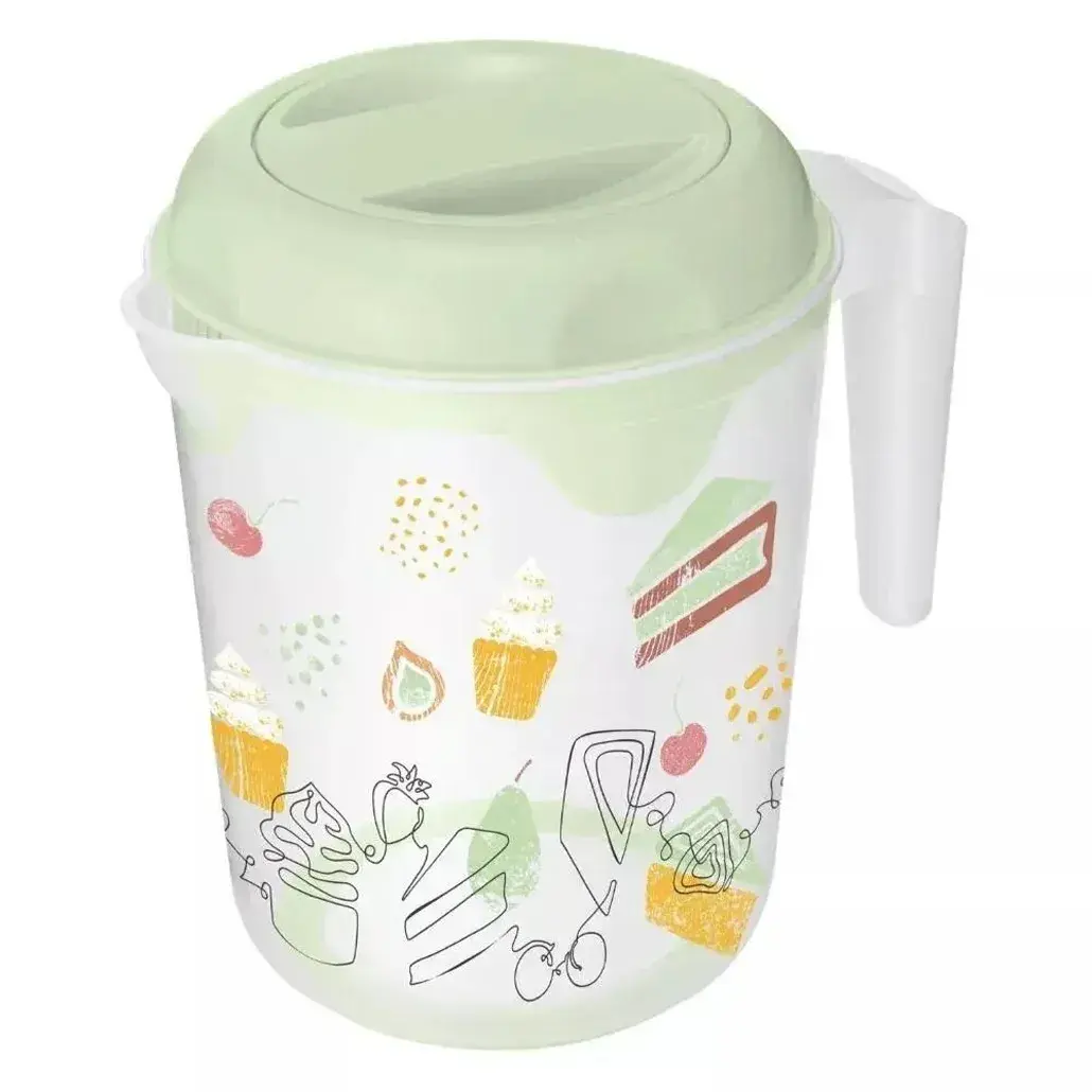 Кувшин изготовлен из высококачественного пластика, который не впитывает запахи и не влияет на вкус напитков. Декоративные элементы выполнены в пастельных тонах, что делает изделие не только функциональным, но и стильным дополнением кухонного интерьера.