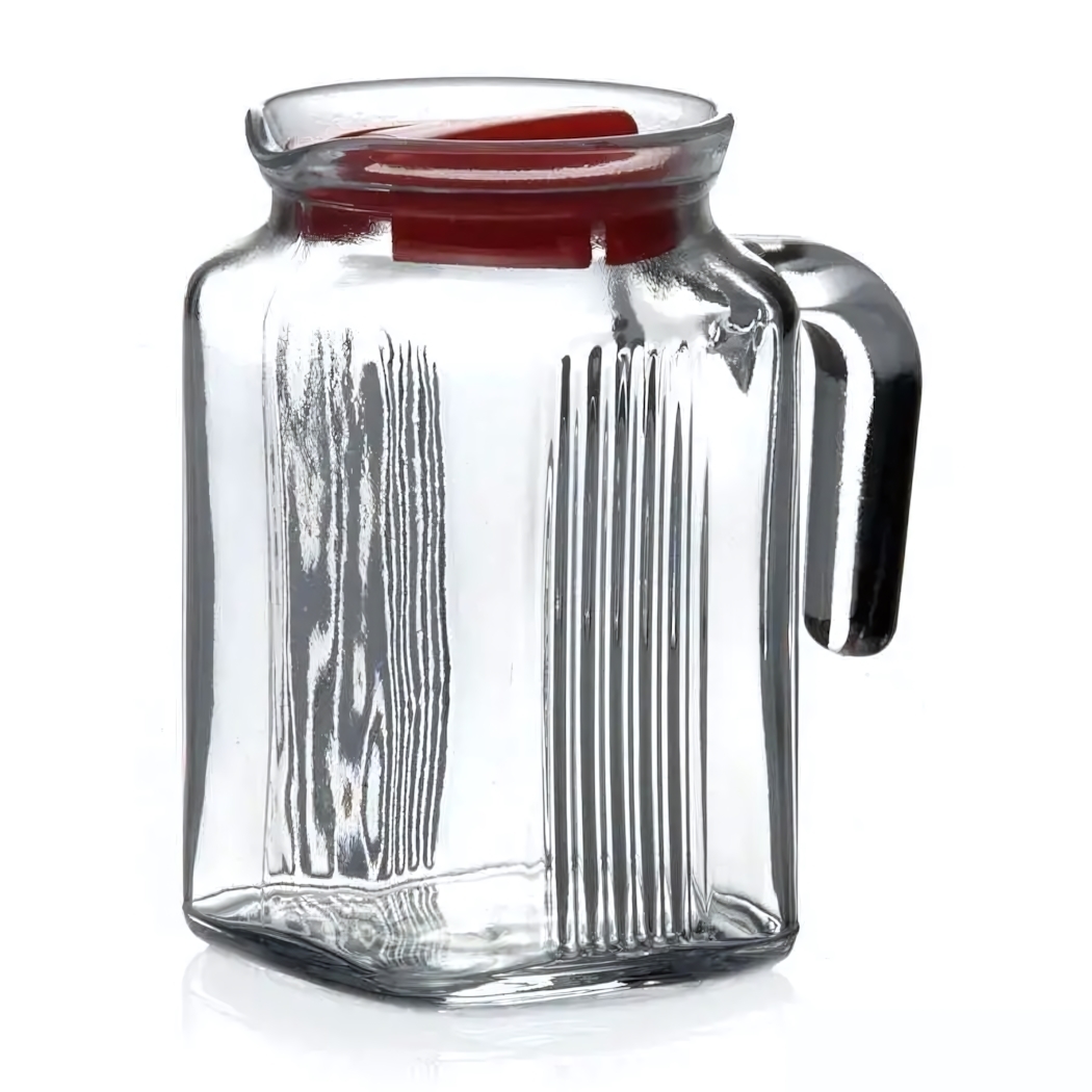 Кувшин стеклянный «ФРИГО» 600 мл с красной крышкой, для напитков — Pasabahce