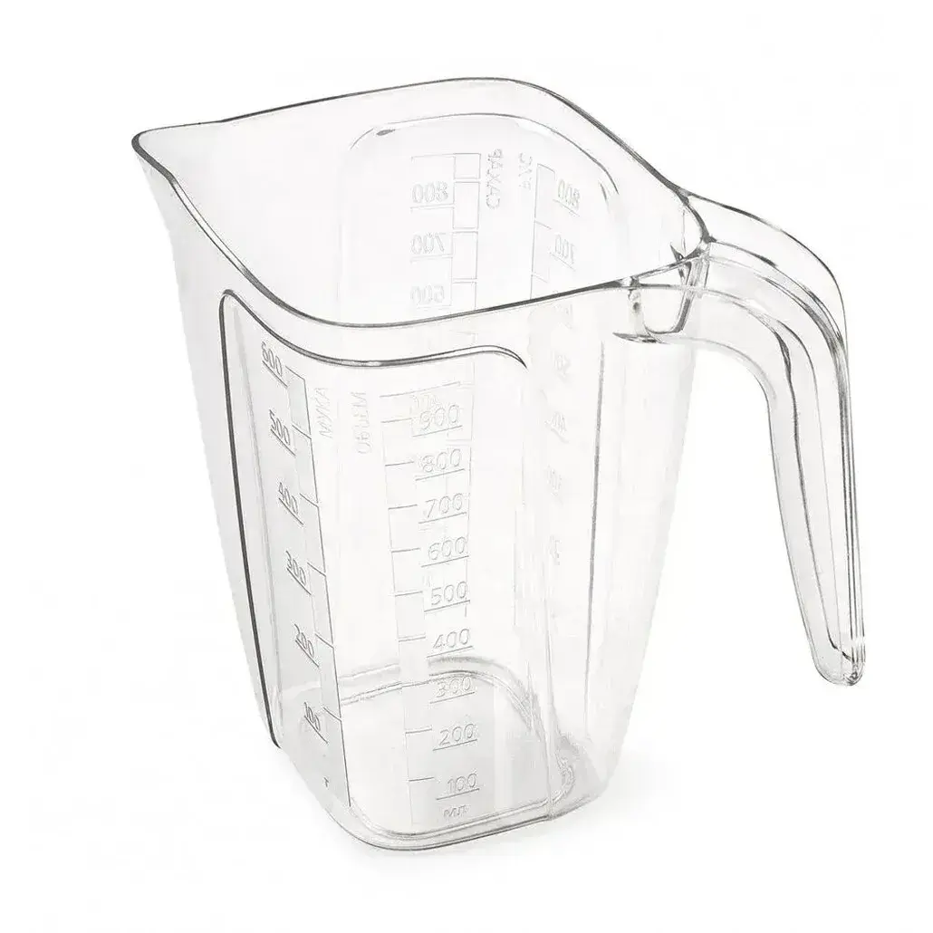 Прозрачный пластиковый кувшин с детализированной шкалой станет незаменимым помощником на вашей кухне. Четкая градация в миллилитрах и литрах обеспечивает идеальную точность при приготовлении блюд, напитков и консервации.