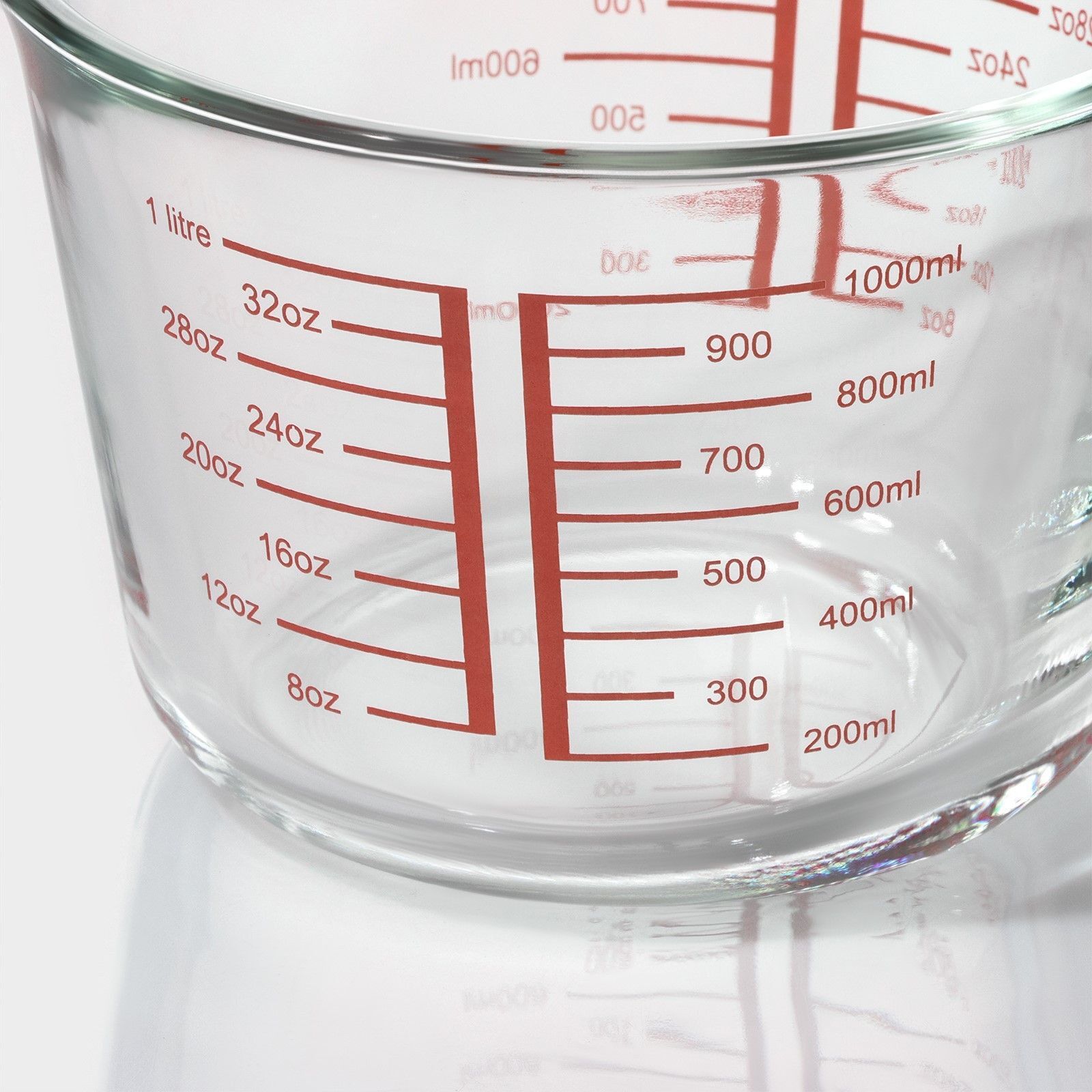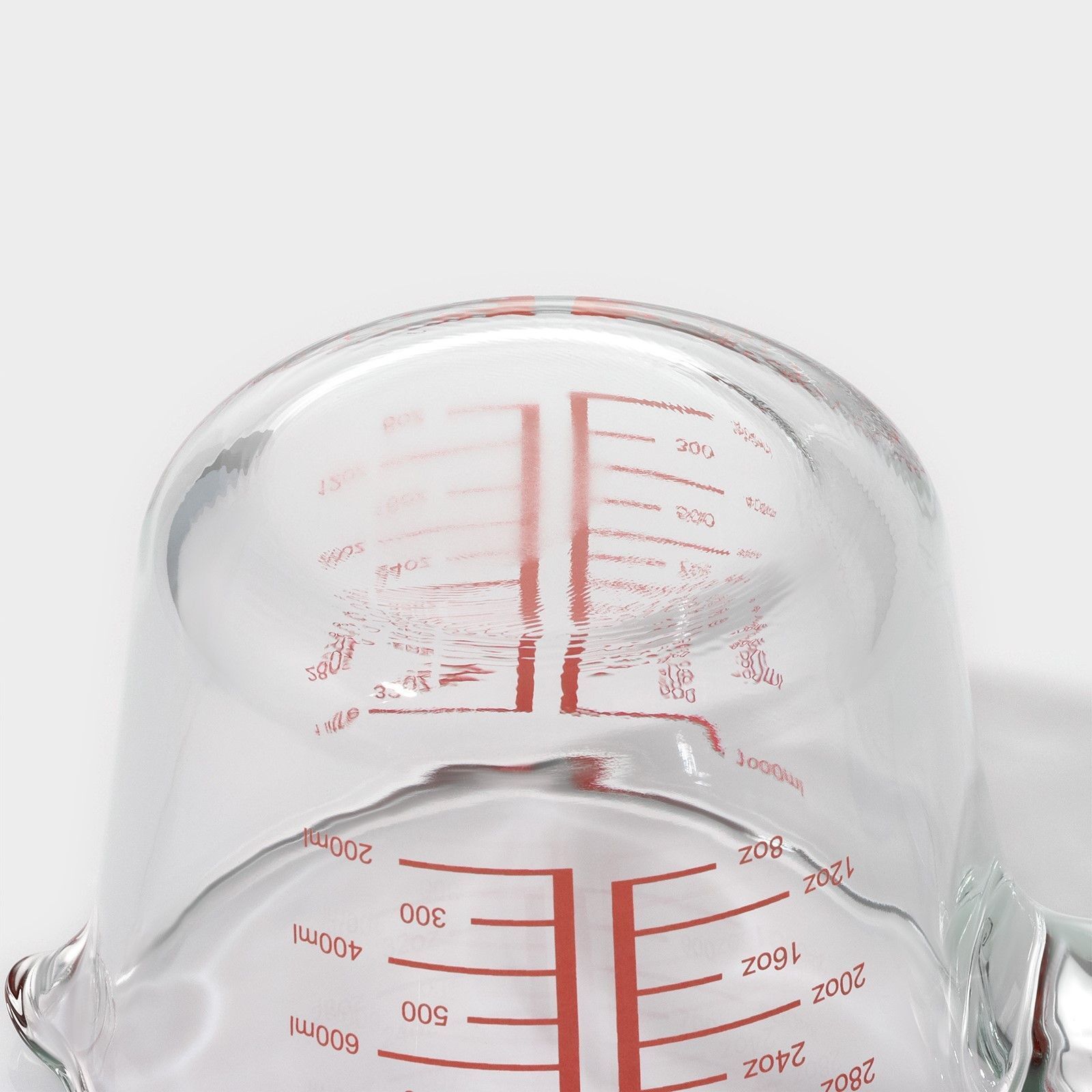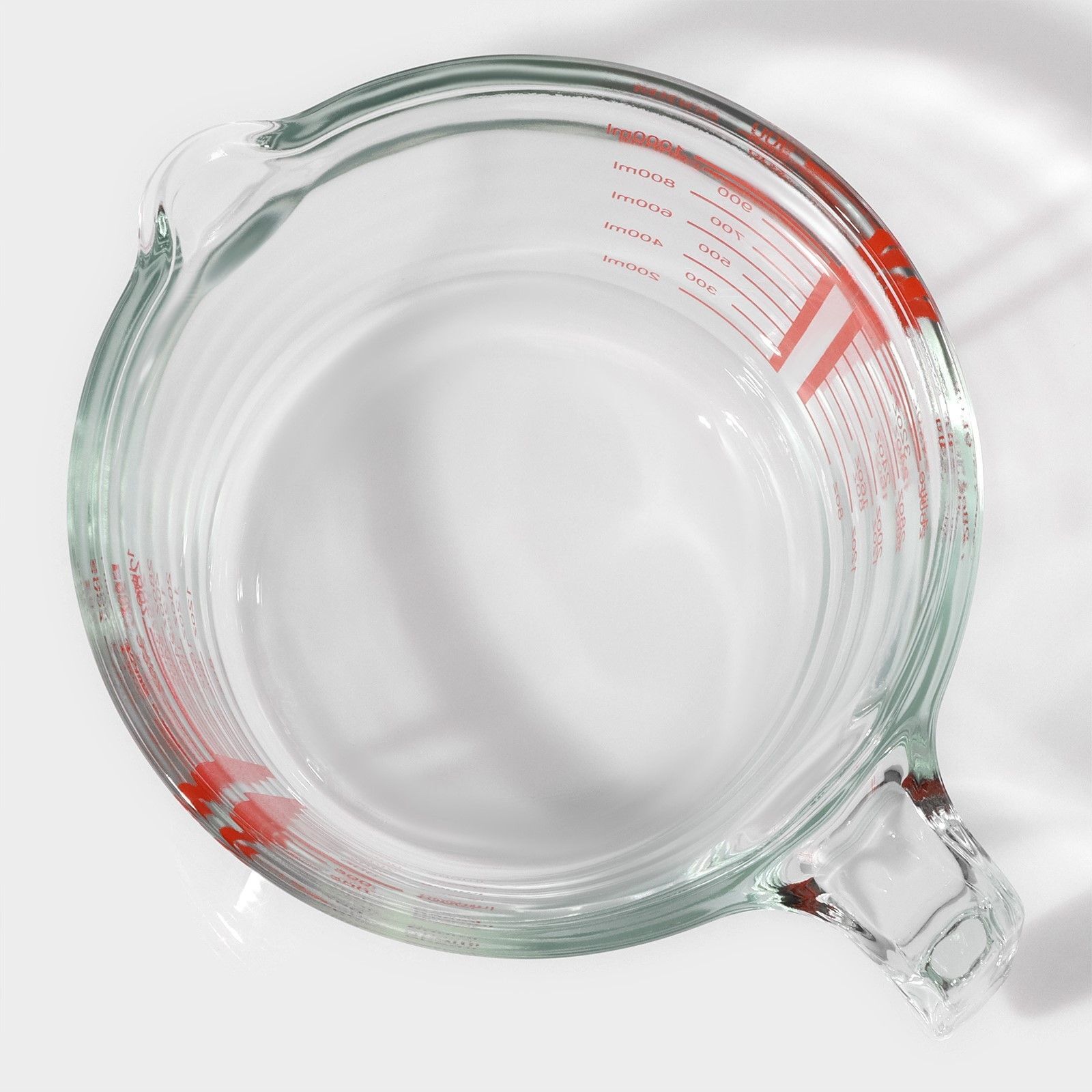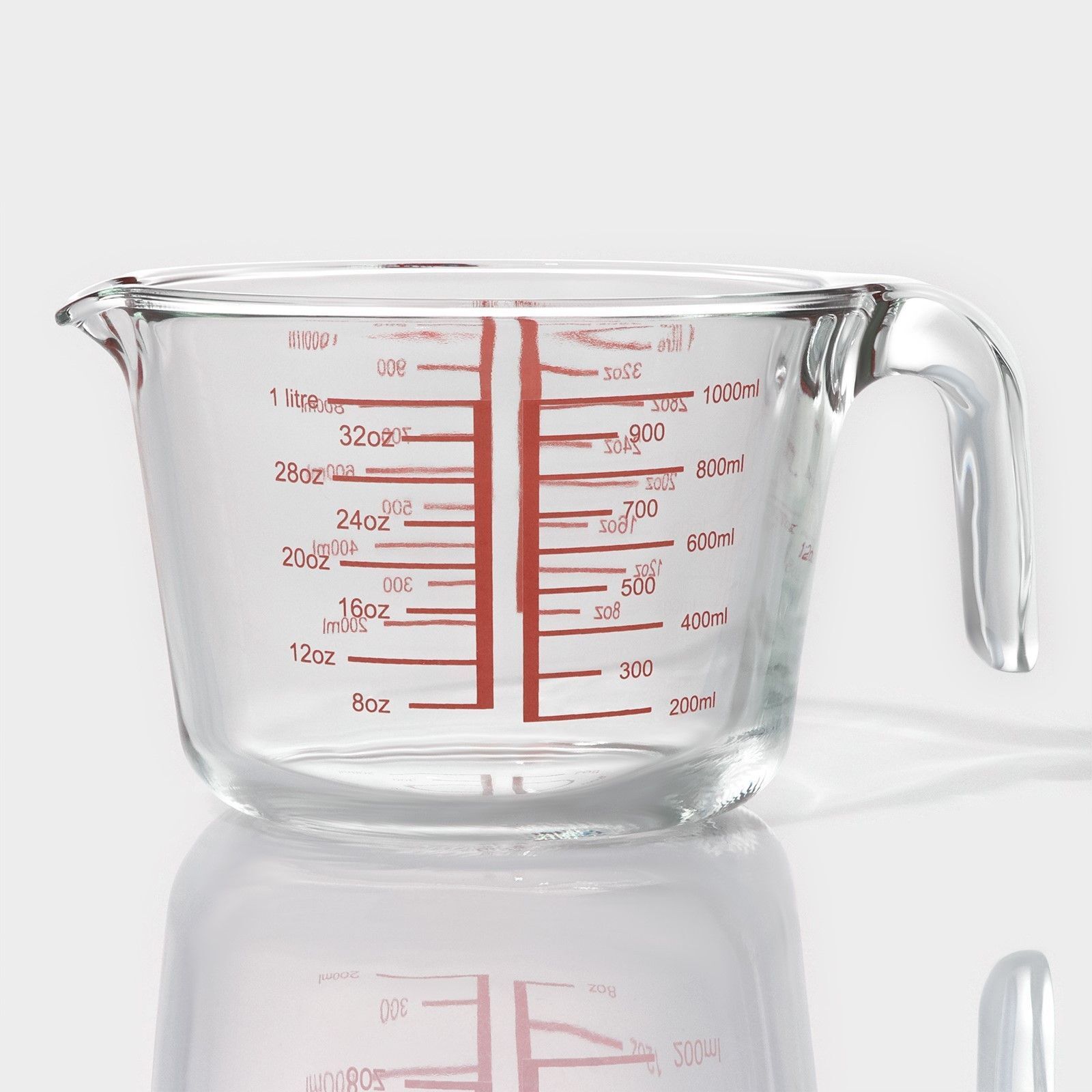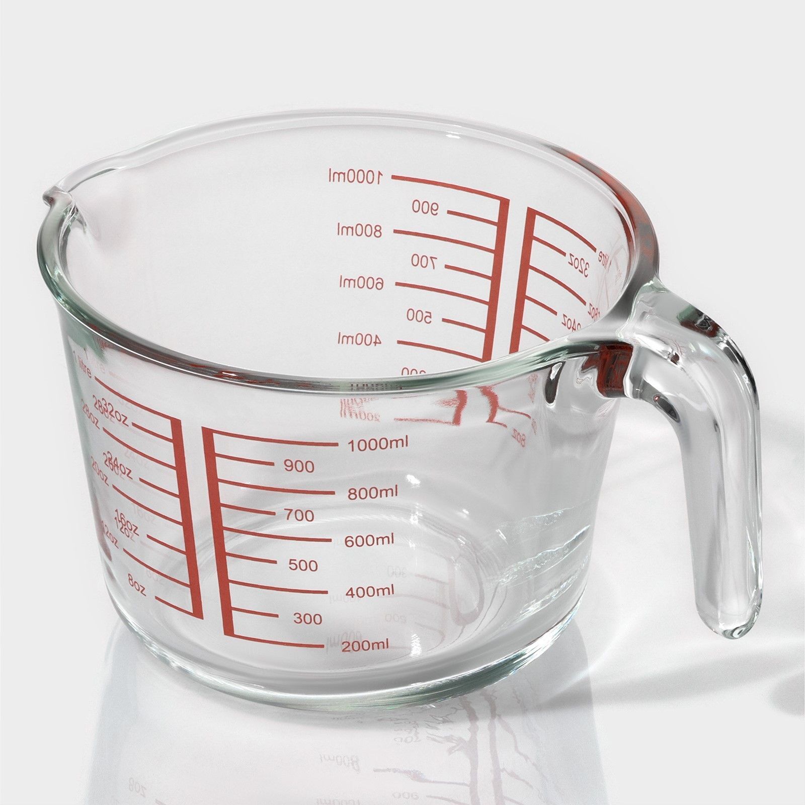 Кувшин мерный стеклянный, 1 л, прозрачный, жаропрочное стекло, шкала мл и унции, ручка, для измерения ингредиентов