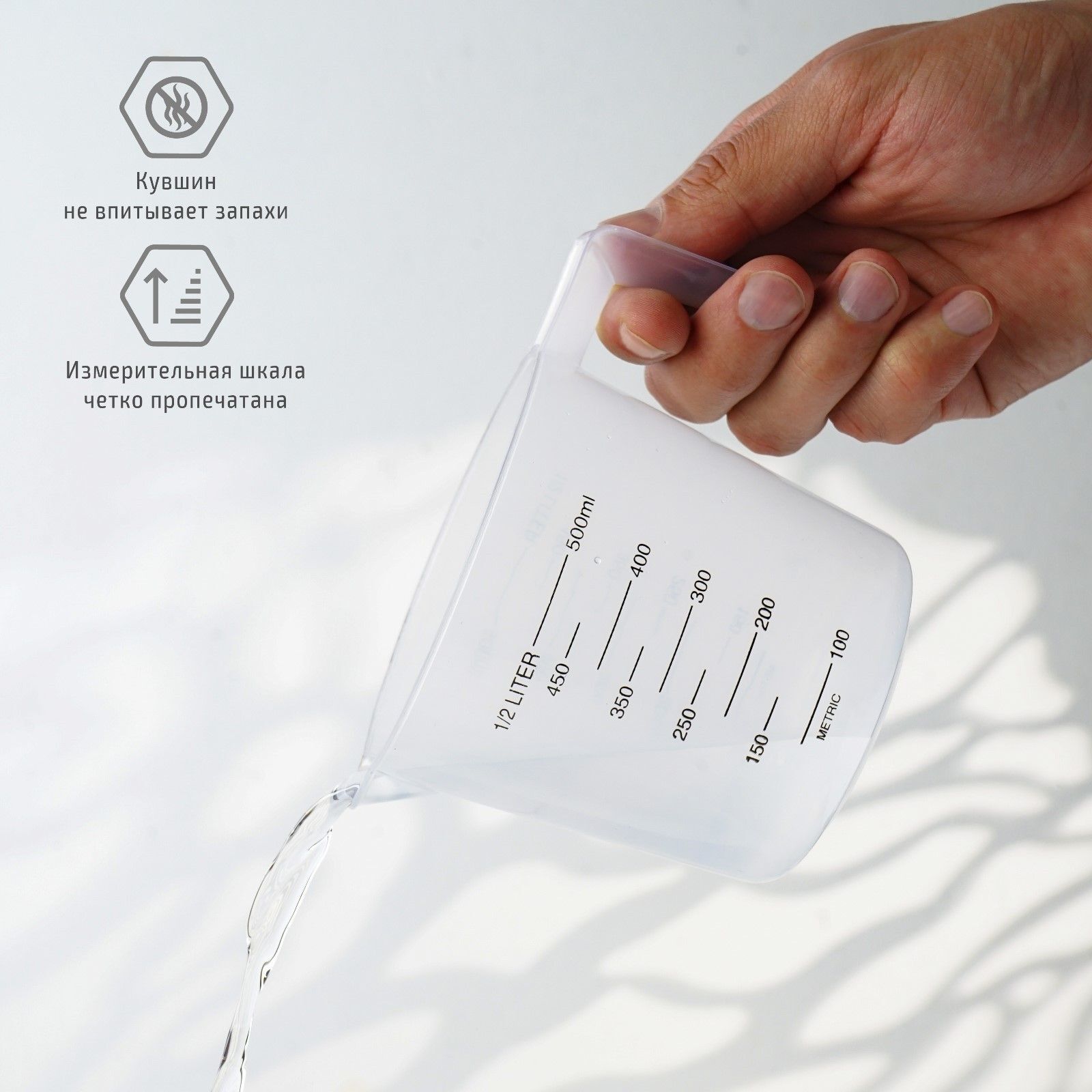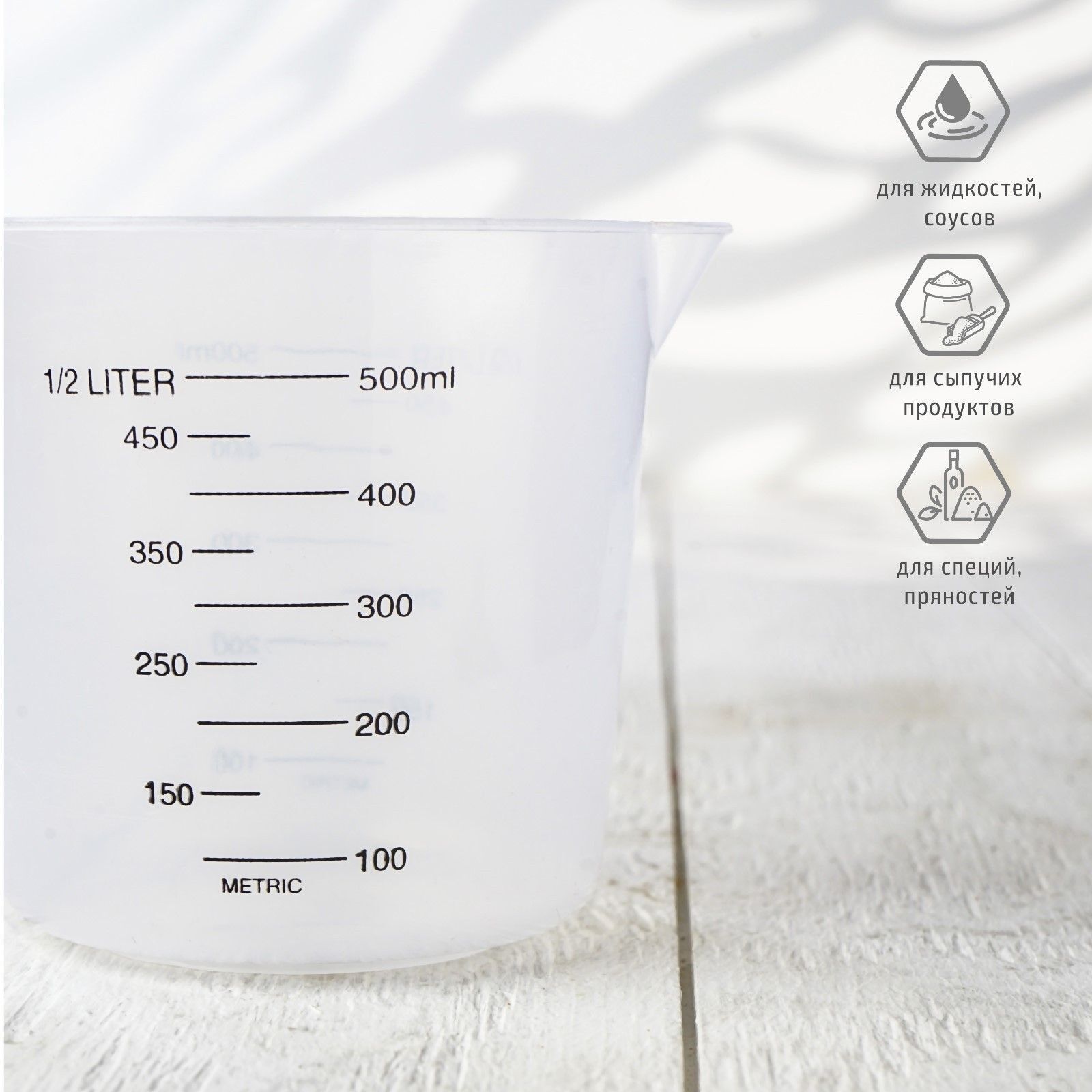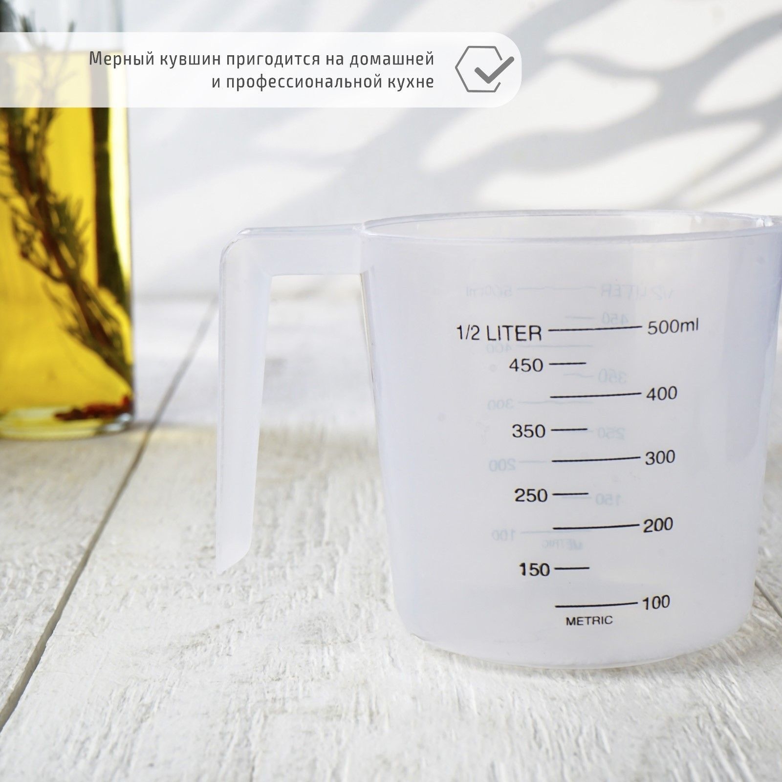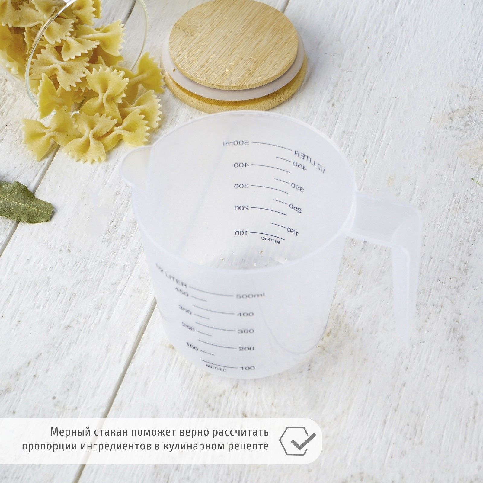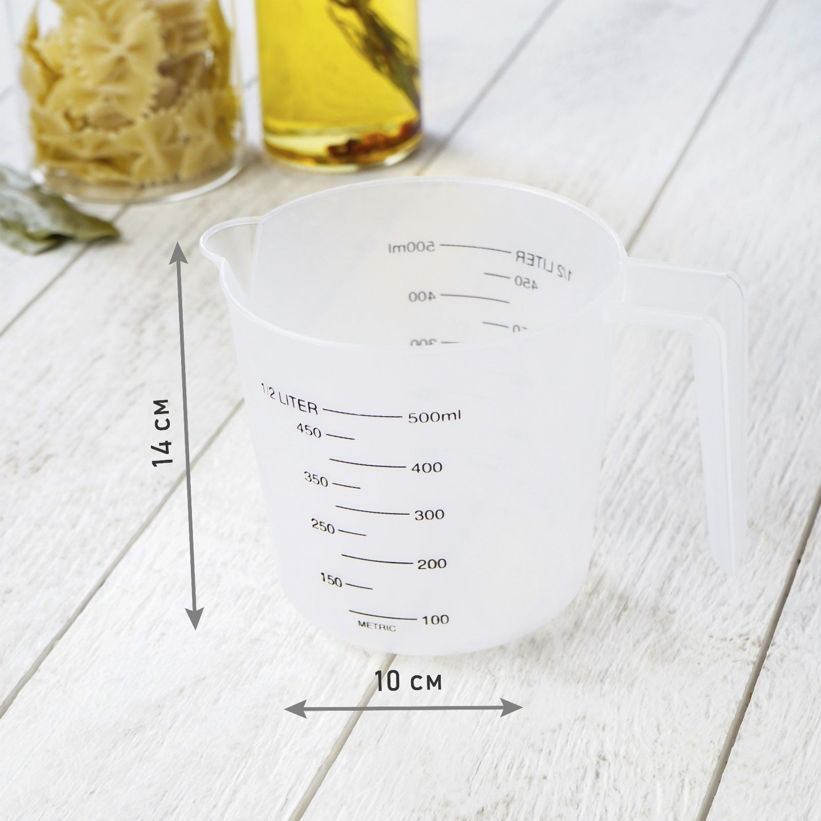 - Объем 500 мл позволяет измерять как небольшие, так и средние порции ингредиентов.