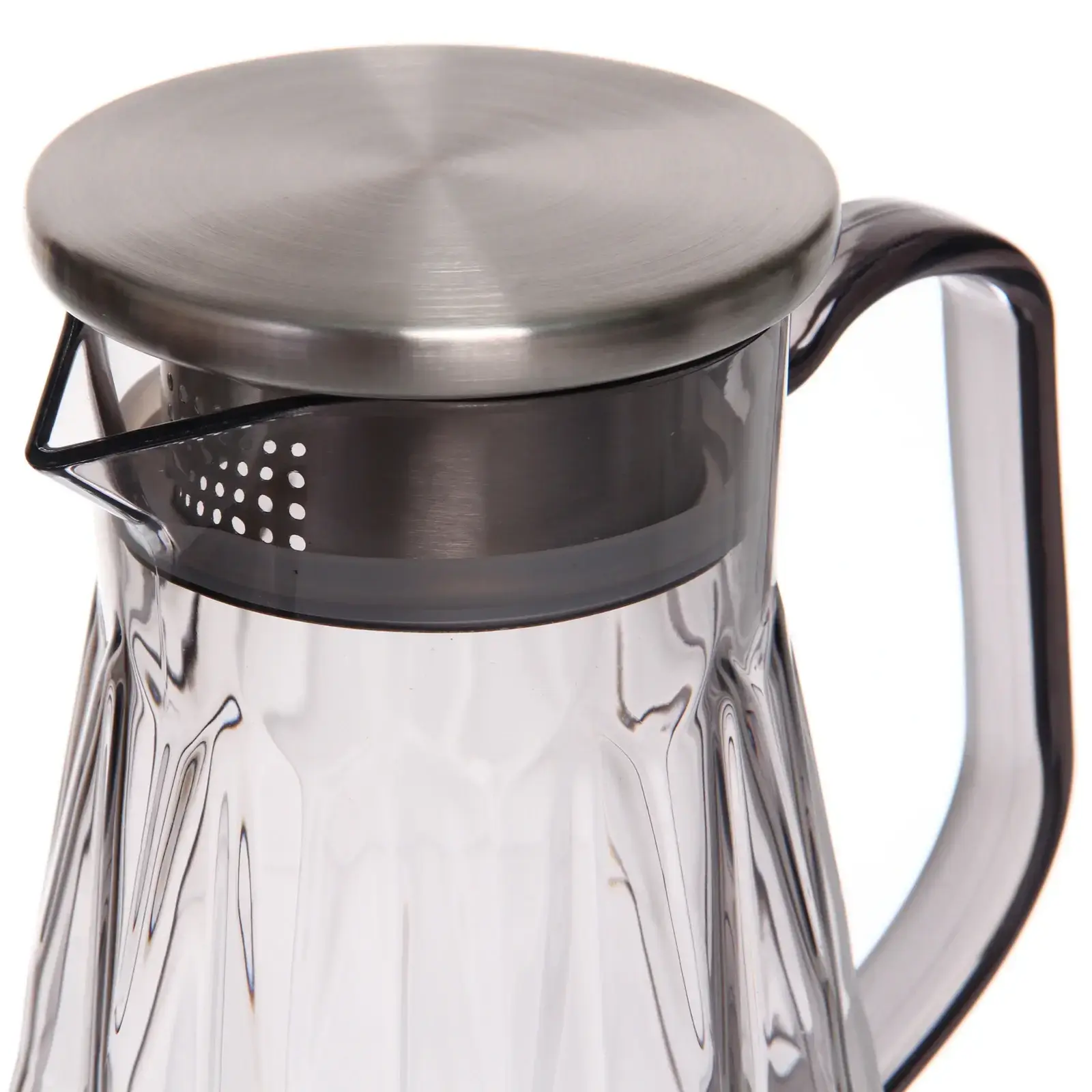 Кувшин выполнен из качественного пластика, что делает его легким и прочным. Прозрачный материал позволяет видеть содержимое, а стильный металлический акцент придает ему современный вид. Благодаря оптимальному объему в 1500мл, вы сможете налить достаточно напитка для всей семьи или компании друзей.
