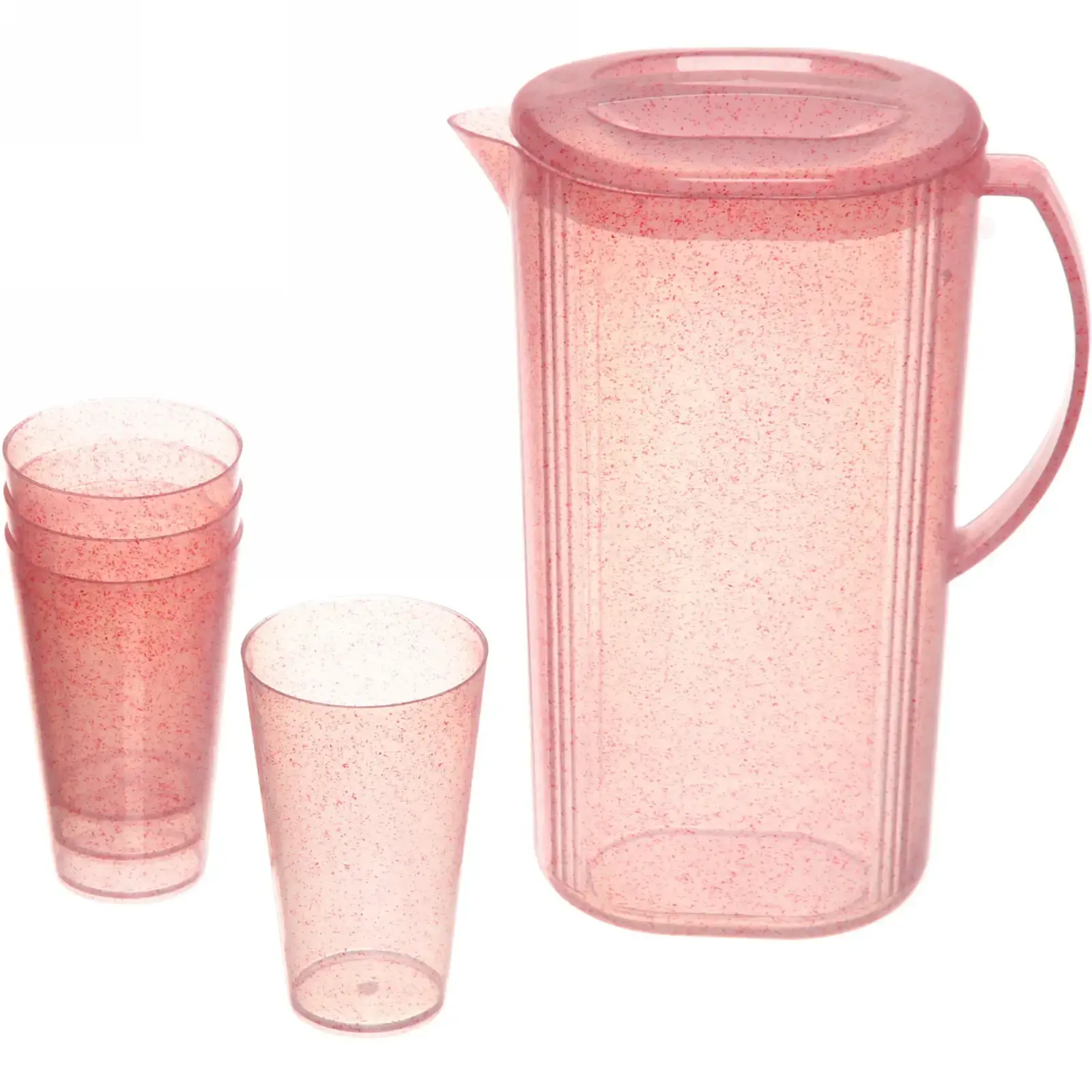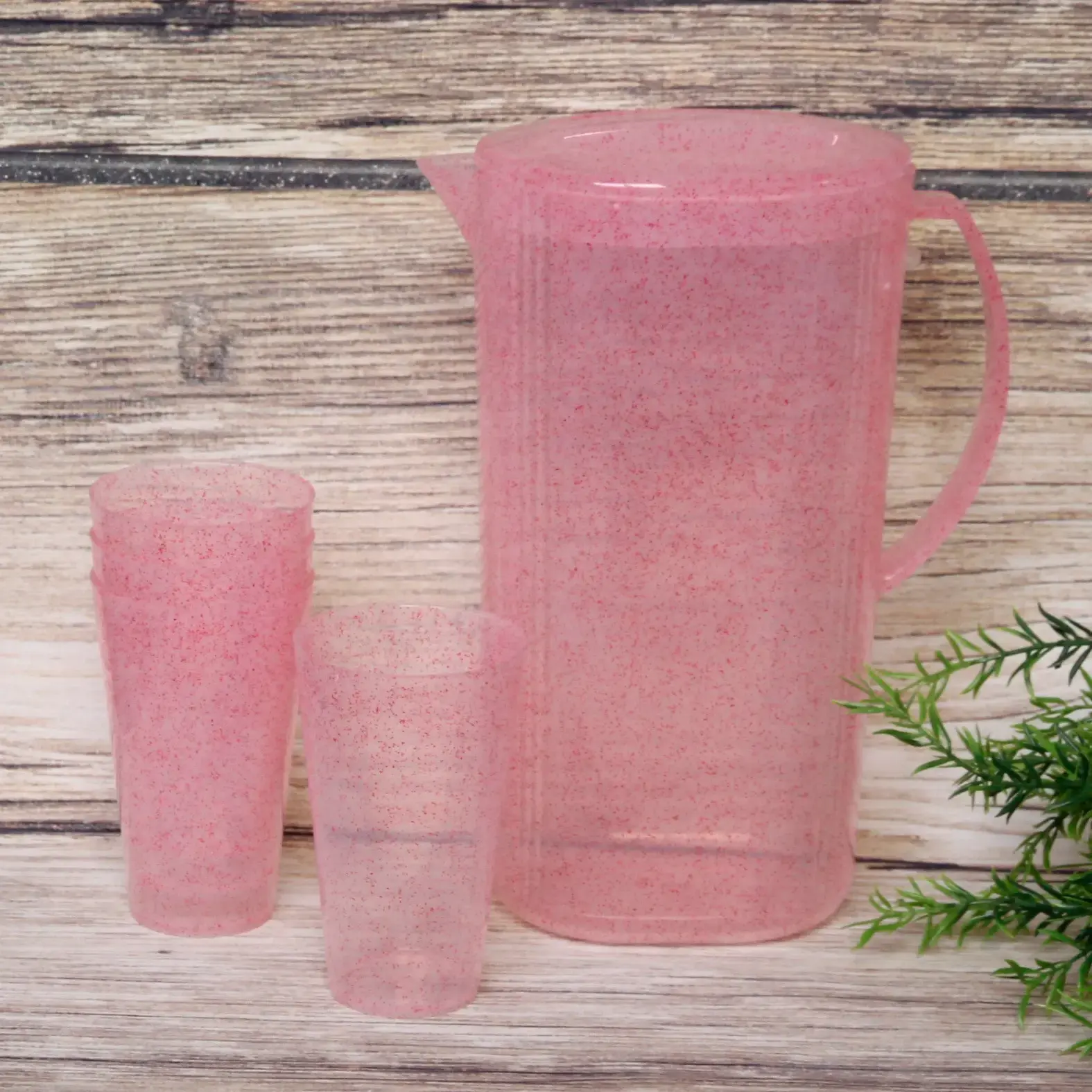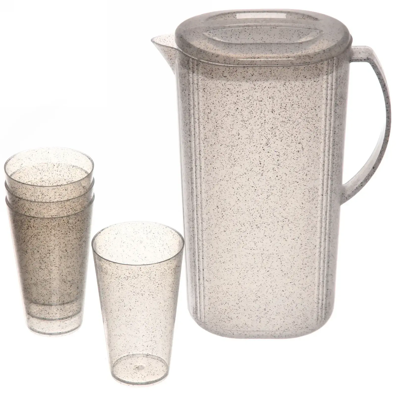 Набор «ЭкоЛайф» сочетает в себе удобство и стиль: кувшин на 1,8 литра и 4 стакана по 250 мл станут идеальными спутниками для семейных обедов, пикников или вечеринок. Прозрачный пластик с деликатными блестящими вкраплениями добавит изюминку сервировке, а компактные размеры (10х12,5х23 см) обеспечат удобное хранение.