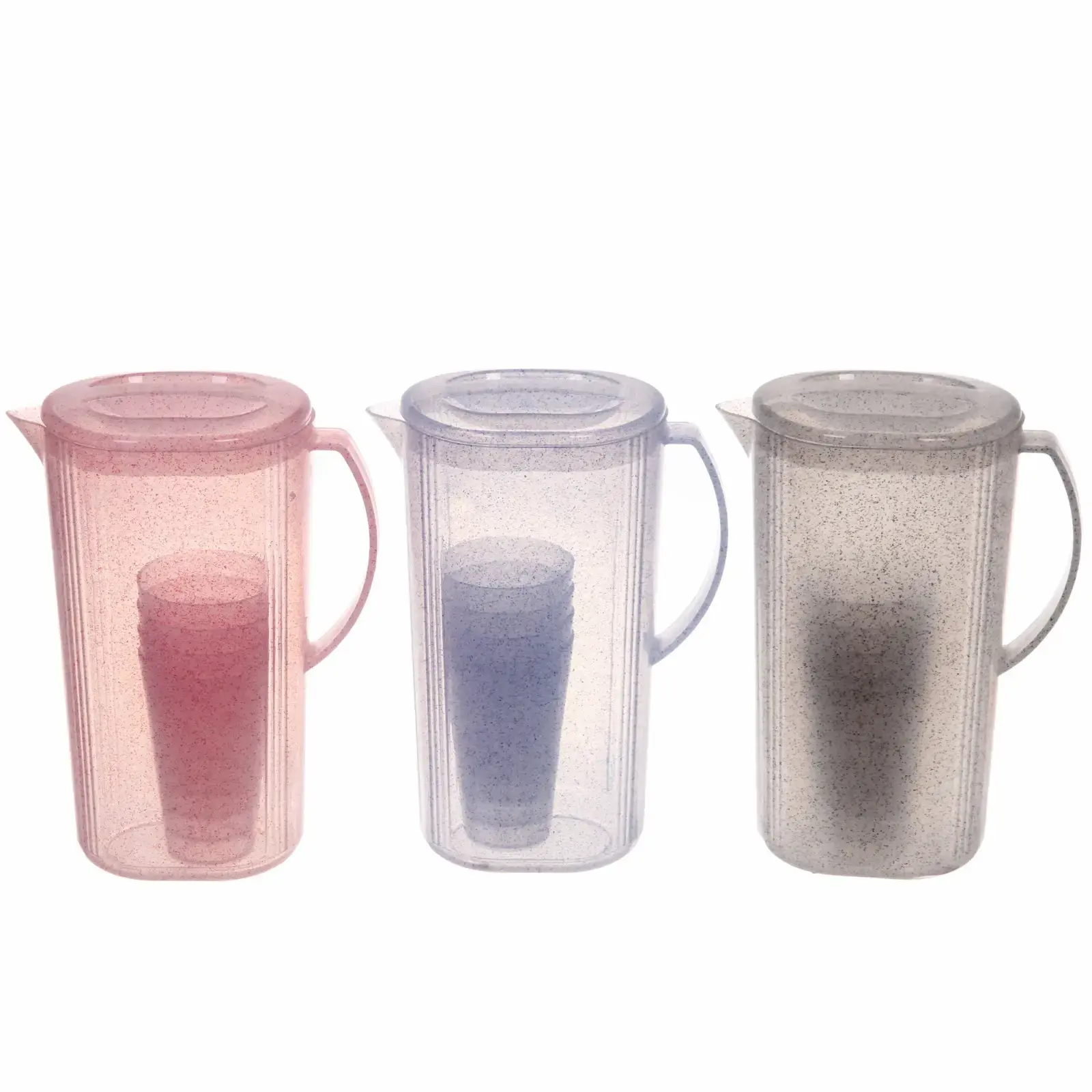 Кувшин «ЭкоЛайф» пластиковый 1,8л с 4 стаканами 250мл, розовый/серый/голубой, 10х12,5х23см