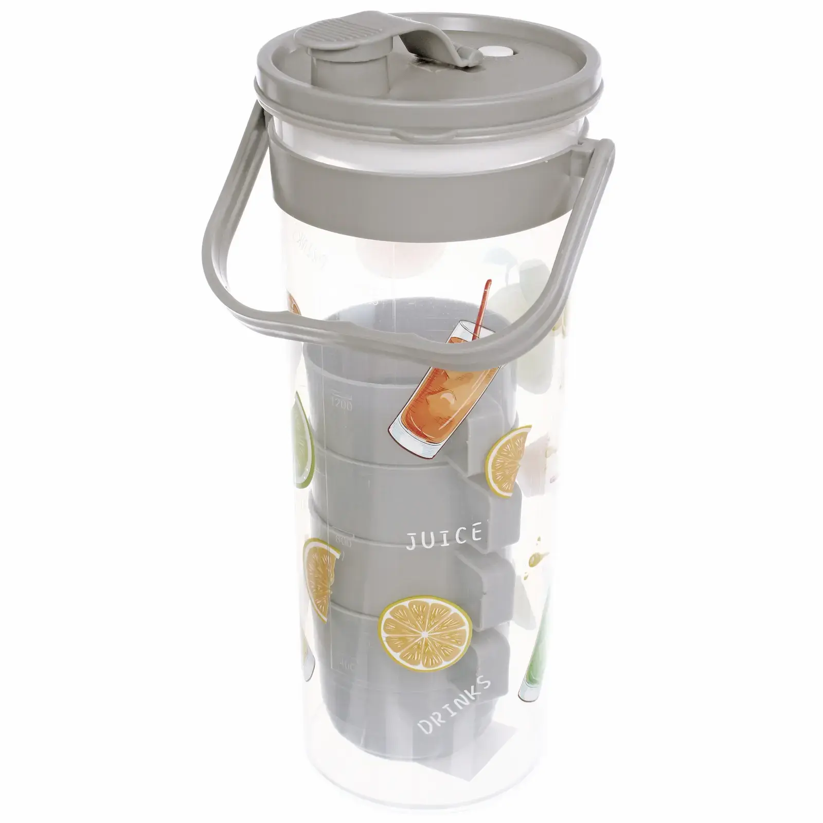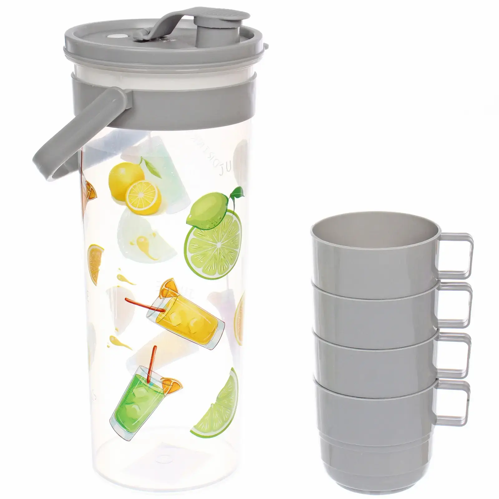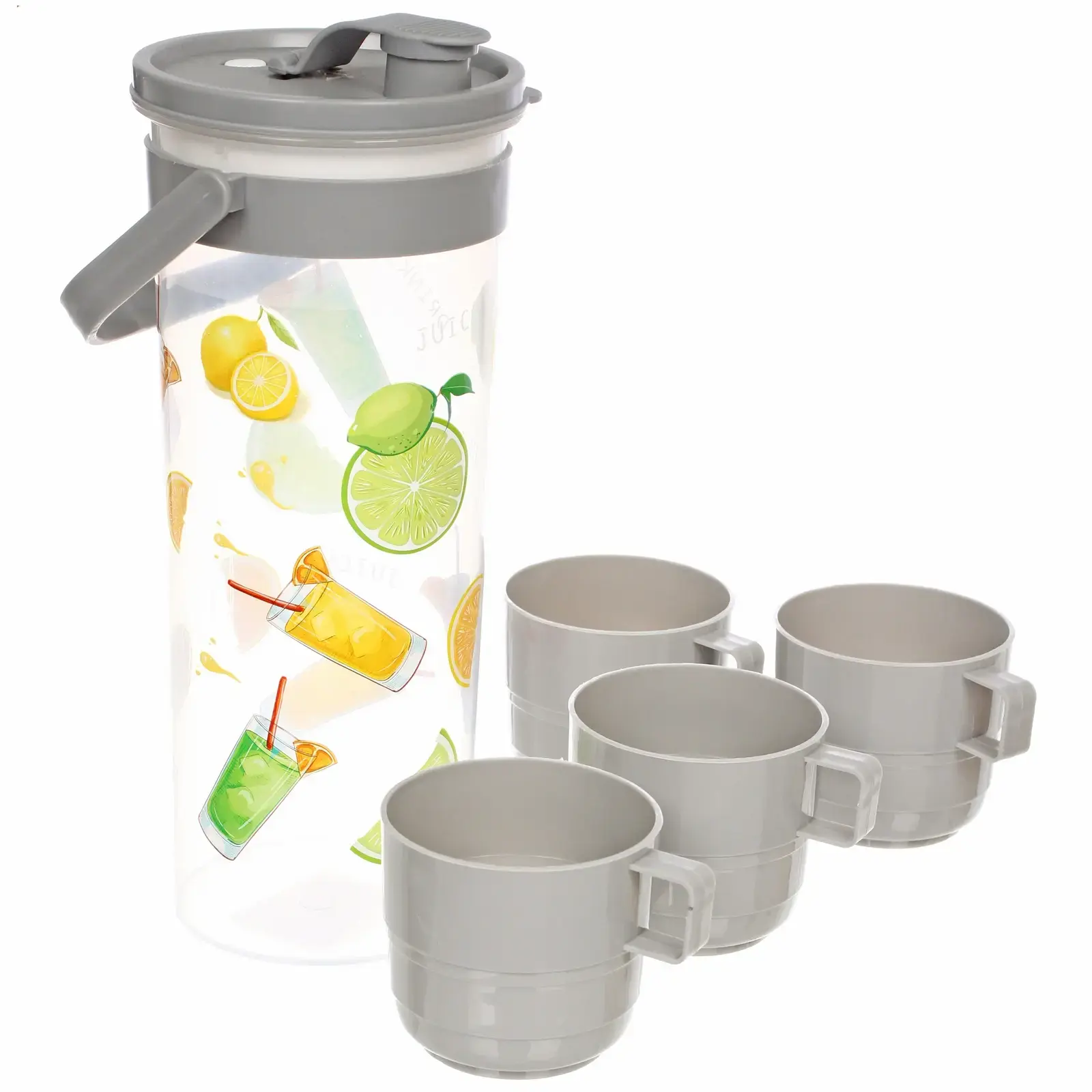 Кувшин объемом 2 литра идеально подходит для подачи лимонада, соков или других освежающих напитков. В комплект входят четыре пластиковых кружки объемом 300 мл, которые удобно складываются друг в друга, что делает их идеальными для хранения и транспортировки. Этот набор станет отличным выбором для пикников, дачных выездов или домашних вечеринок.