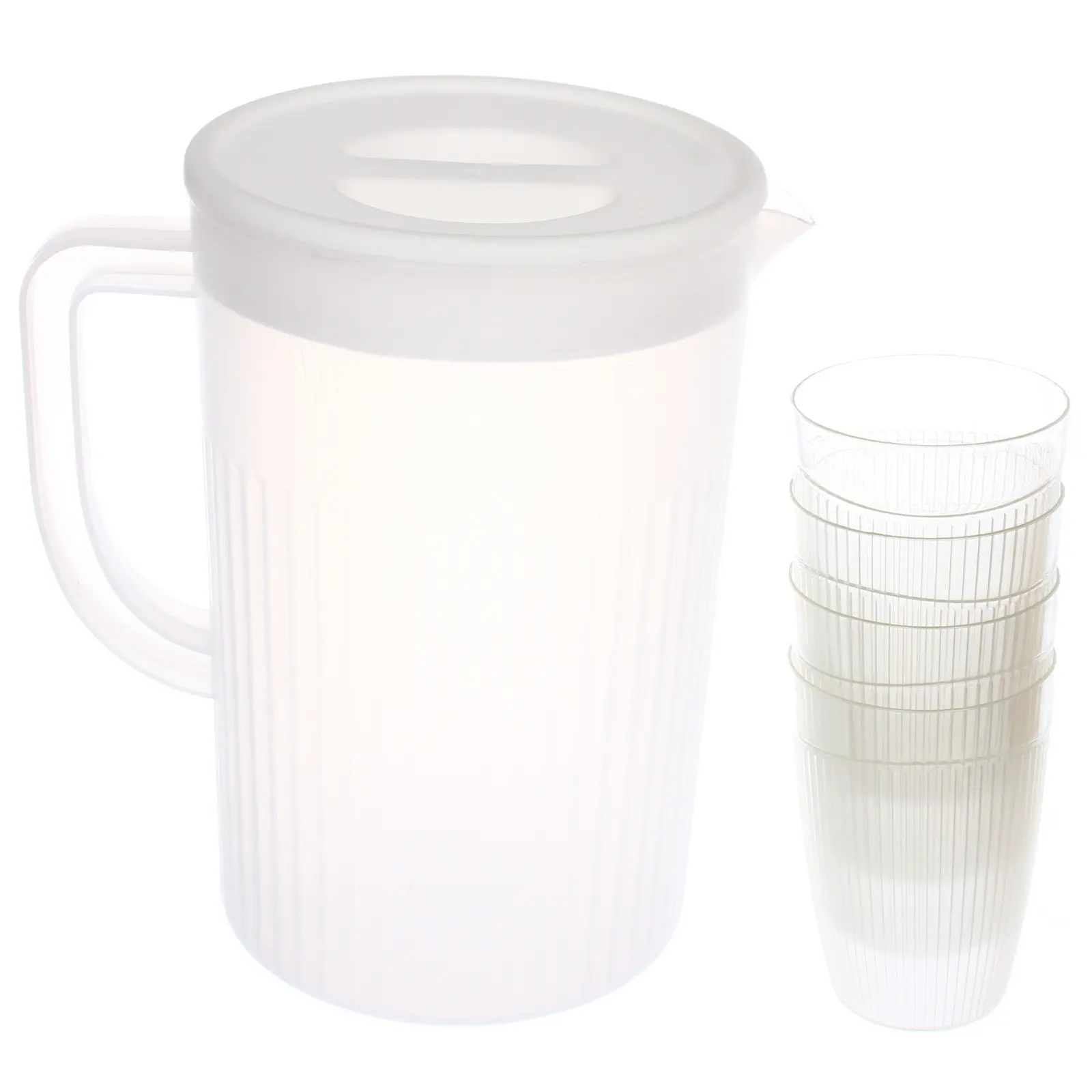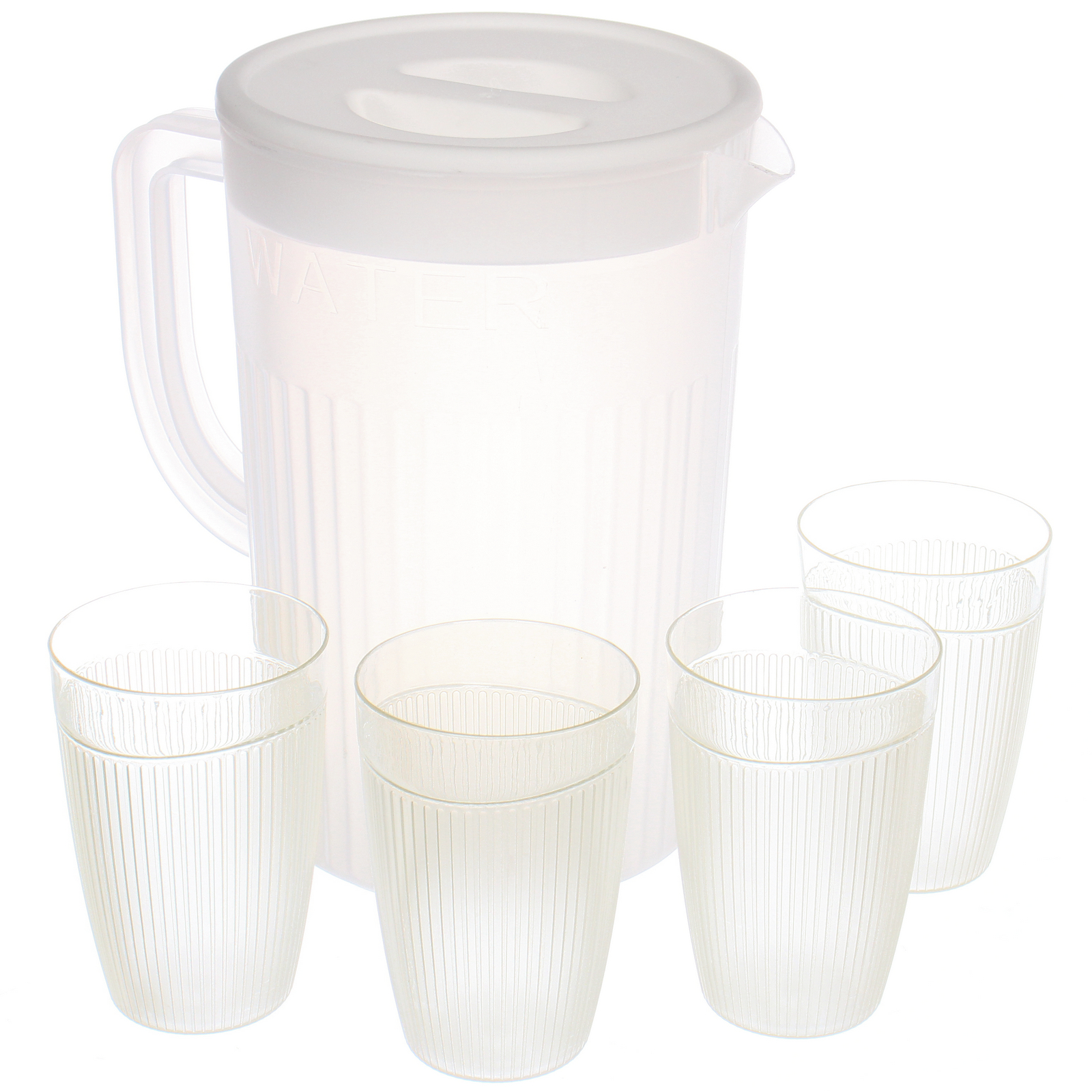 Кувшин пластиковый «Прохлада» 2л с 4 стаканами 200мл, прозрачный, рифленая поверхность