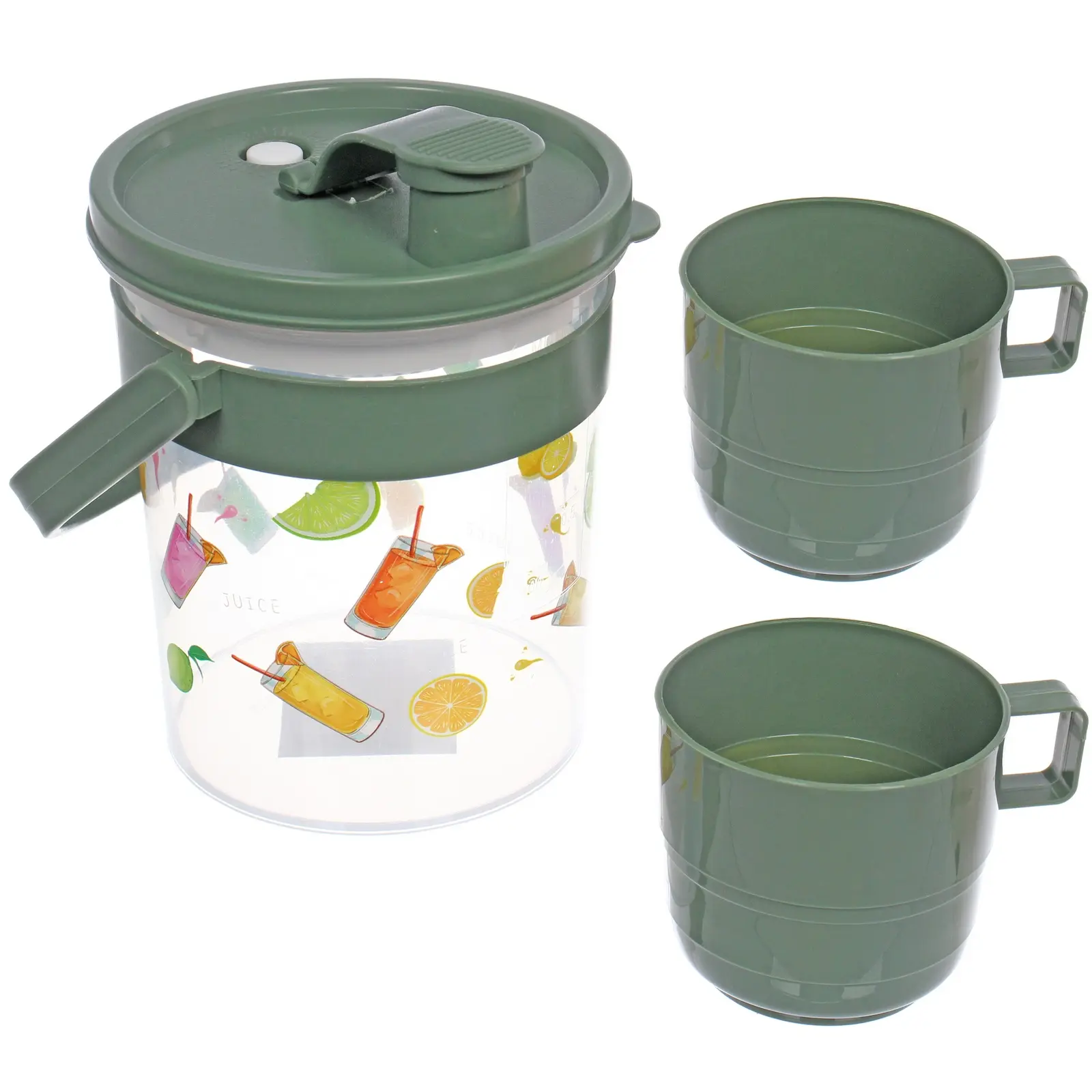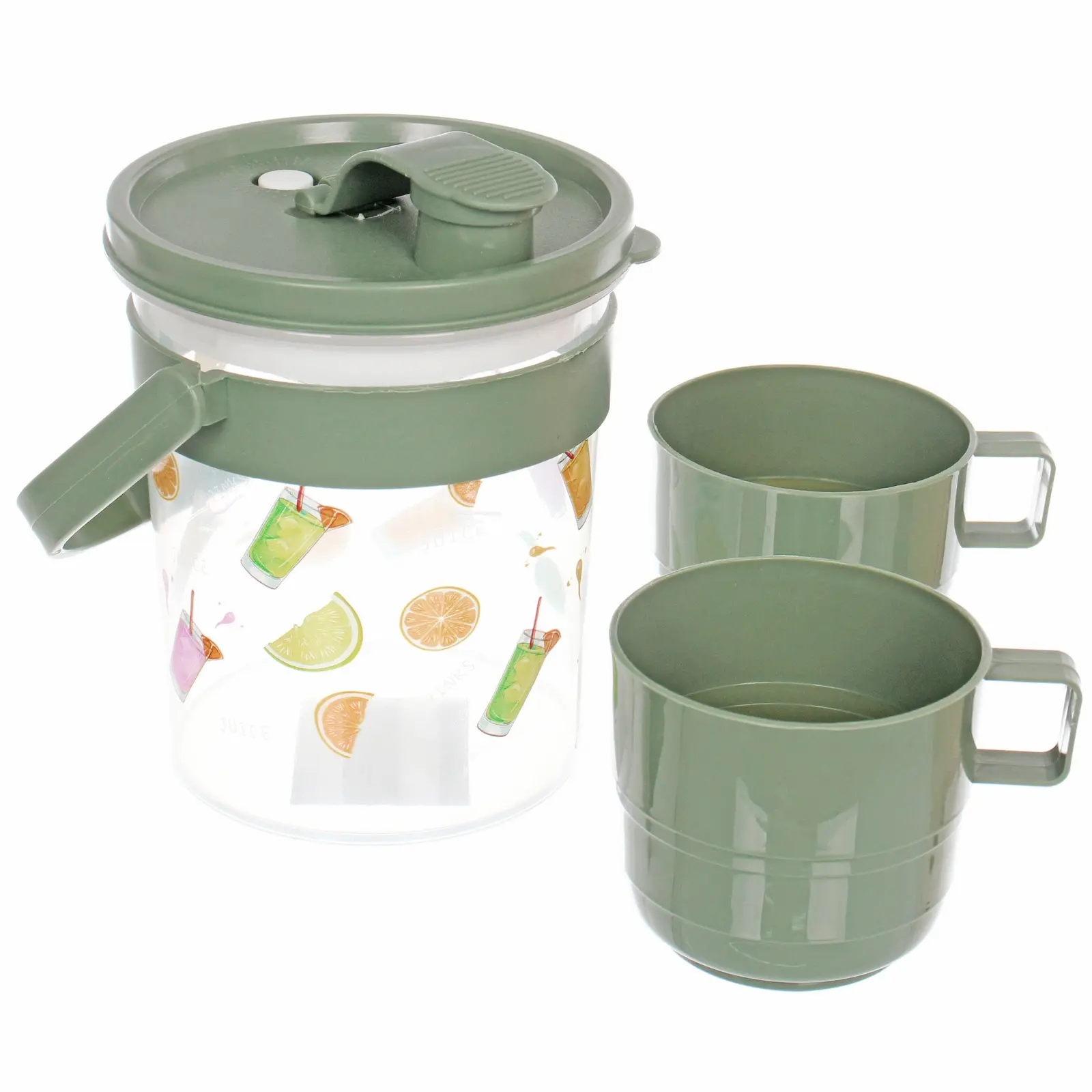 Пластиковый кувшин 'Летний зной' объемом 850мл в комплекте с двумя удобными кружками по 300мл станет незаменимым помощником для домашнего использования или пикников на свежем воздухе.