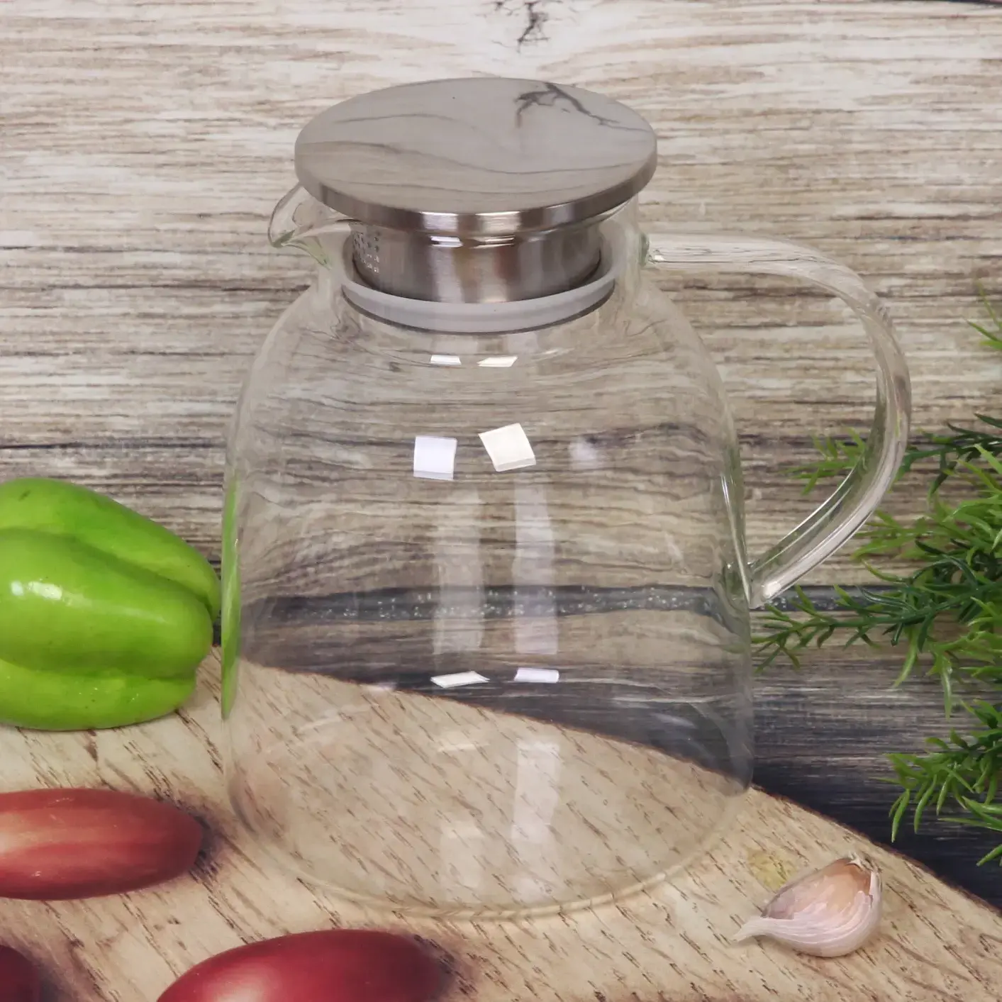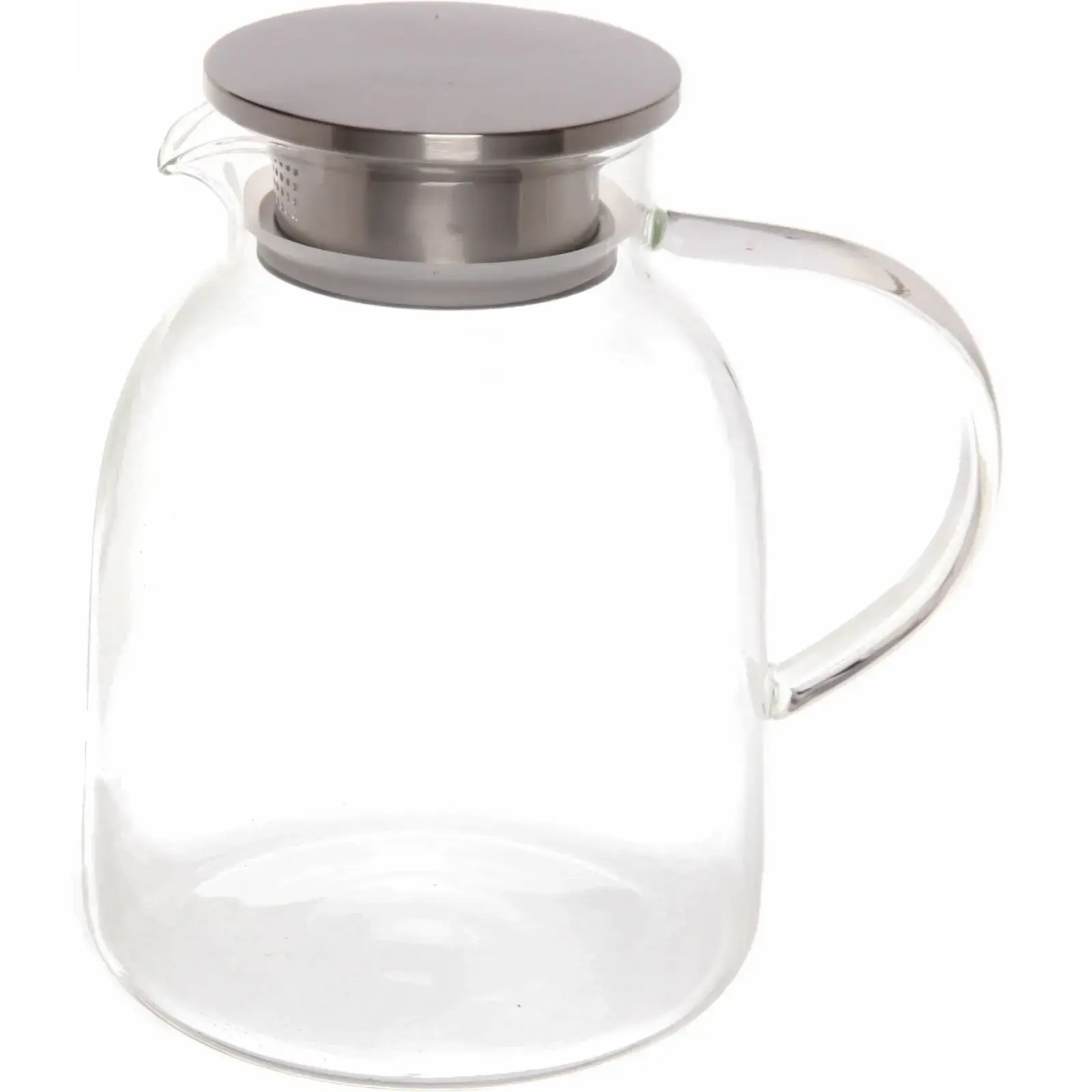 Прозрачный стеклянный кувшин с металлической крышкой сочетает элегантность и функциональность. Встроенный фильтр скрыт под герметичной крышкой — это позволяет удобно заваривать чай, настаивать травы или подавать напитки без частиц. Объем 1800 мл идеален для семьи или гостей.