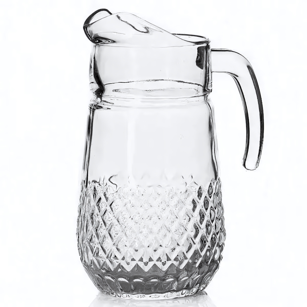 Элегантное решение для подачи воды, соков и домашних напитков. Узор из ромбов создаёт изысканную игру света, превращая обычную сервировку в элемент декора. Идеально подходит для семейных обедов, праздничных столов и ресторанов.