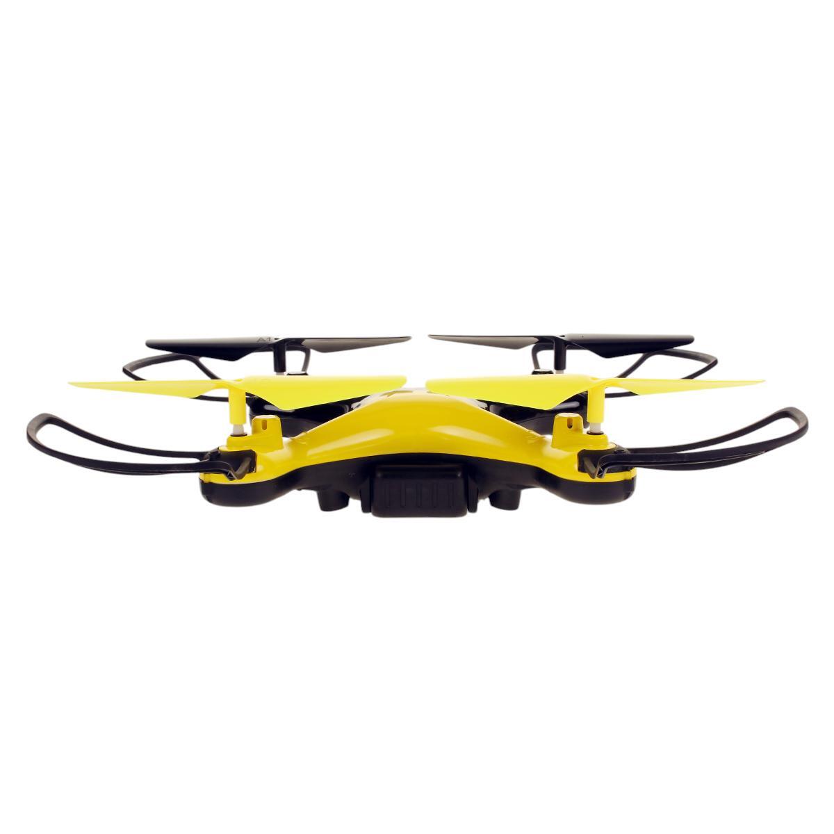 Чёрно-жёлтый дизайн с яркими акцентами делает дрон заметным в воздухе. Защитные рамы вокруг винтов предотвращают повреждения при столкновениях, что особенно важно для обучения. Компактные размеры позволяют использовать квадрокоптер как в помещении, так и на открытом воздухе.
