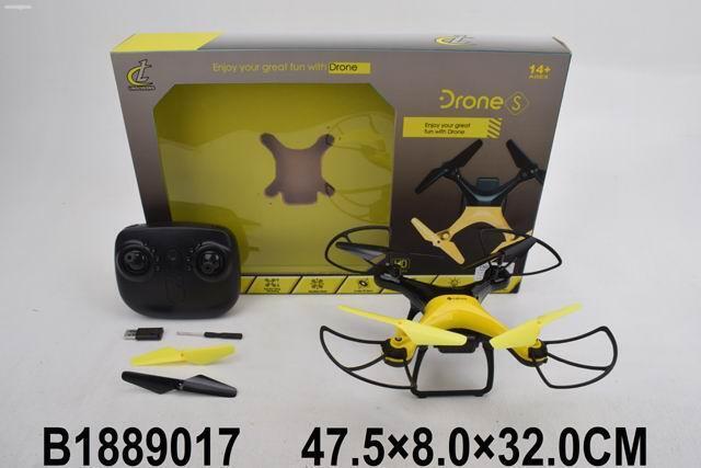 Квадрокоптер на радиоуправлении с защитными рамами, чёрно-жёлтый, дальность 30 м, USB-зарядка
