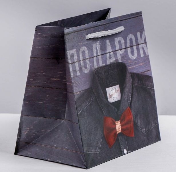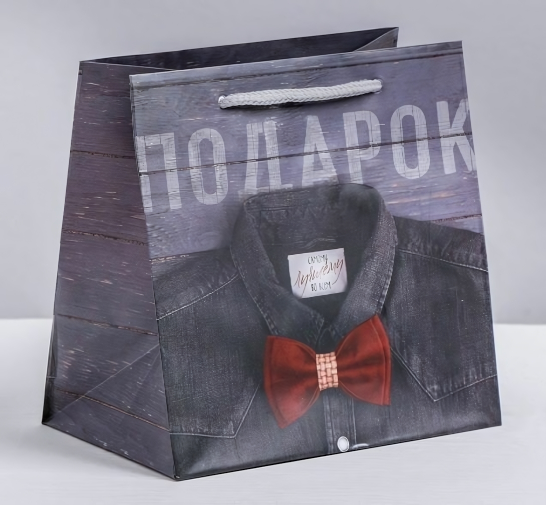 Сделайте момент вручения подарка по-настоящему запоминающимся с элегантным пакетом 'Мужской стиль'. Сдержанный серый цвет и классические элементы мужского гардероба создают безупречный образ.