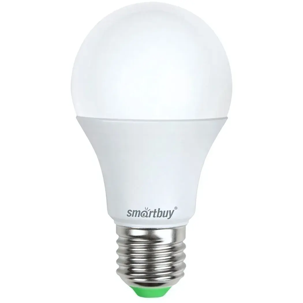 Лампа имеет стандартные размеры, что делает её совместимой с большинством светильников. Корпус выполнен из качественного пластика, а металлический цоколь обеспечивает надежное крепление. Логотип производителя «smartbuy» на корпусе подтверждает высокое качество и надежность данного продукта.