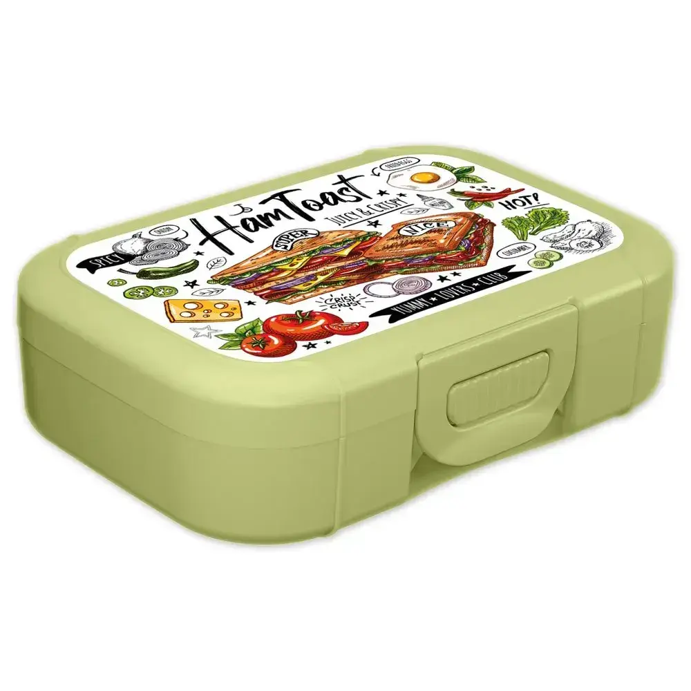 Ланч-бокс герметичный 0,85л с декором "Ham Toast", салатовый, пластик
