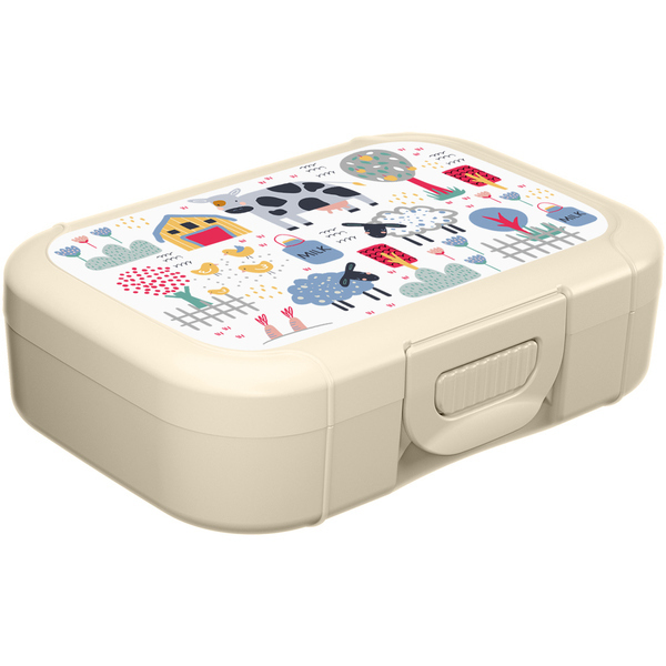 Ланч-бокс имеет объем 0,85л, что позволяет разместить полноценный перекус и напиток, будь то сок или молоко. Его светло-бежевый цвет и яркий декор с фермерской тематикой делают его не только функциональным, но и стильным аксессуаром для детей. Этот ланч-бокс станет отличным спутником для школьников и активных людей, которые ценят комфорт и качество.