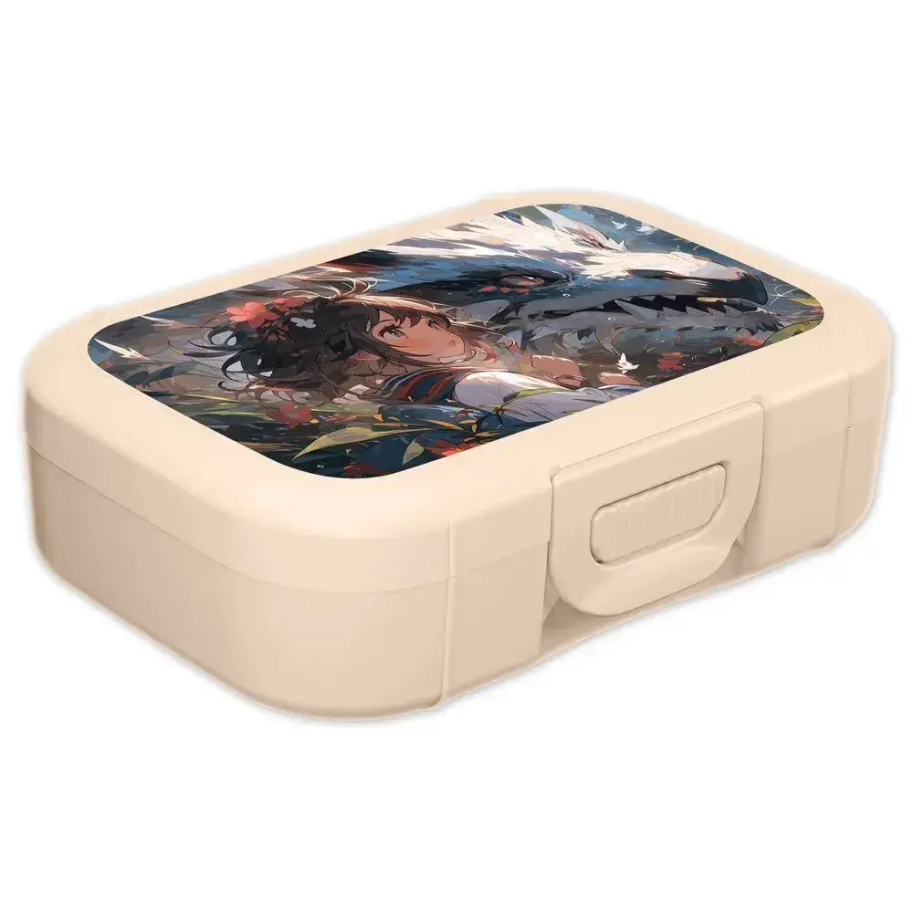 Ланч-бокс детский 0,85л с аниме-декором, пластик, безопасный дизайн, светло-бежевый