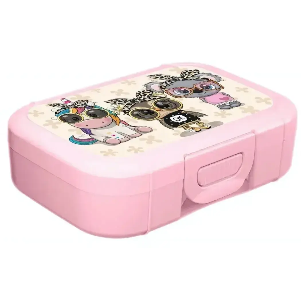 Ланч-бокс детский 0,85л, светло-розовый, с мультяшным декором