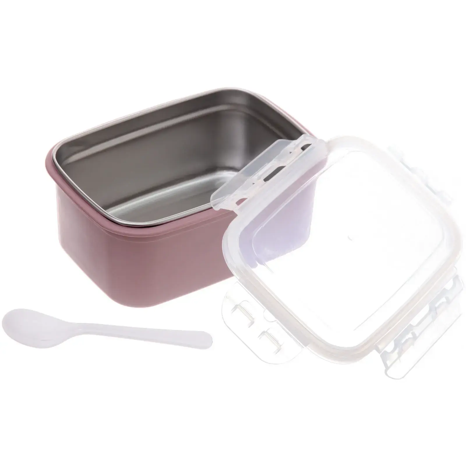 Ланч-бокс имеет прямоугольную форму и размеры 18,5х13,5х8 см, что делает его компактным и удобным для переноски. Прозрачная крышка позволяет быстро увидеть содержимое, а боковые защелки обеспечивают надежное закрытие. В комплект входит пластиковая ложка белого цвета, что делает его еще более практичным для использования в дороге.