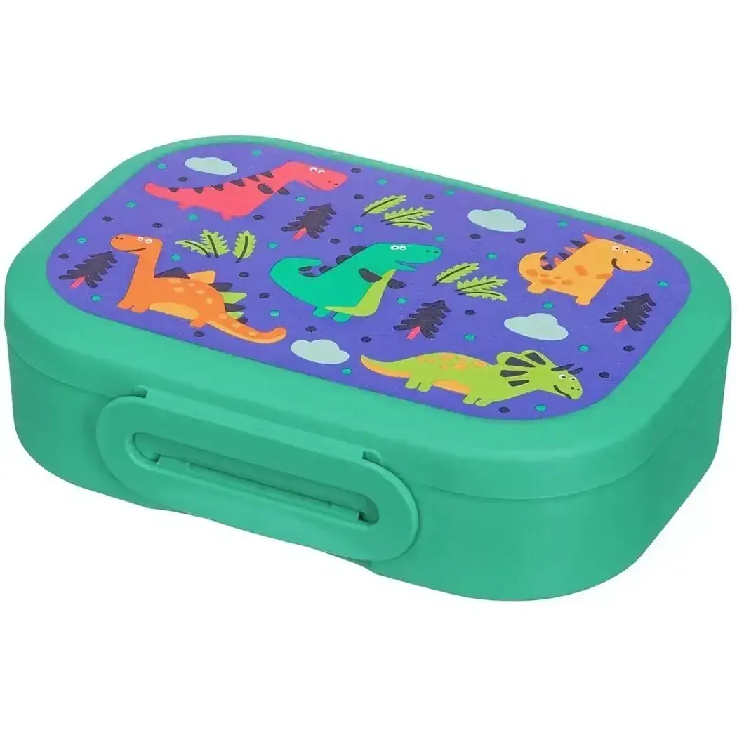 Ланч-бокс детский с декором динозавров, 180x130x50 мм, 0.98 л, зеленый, пластик