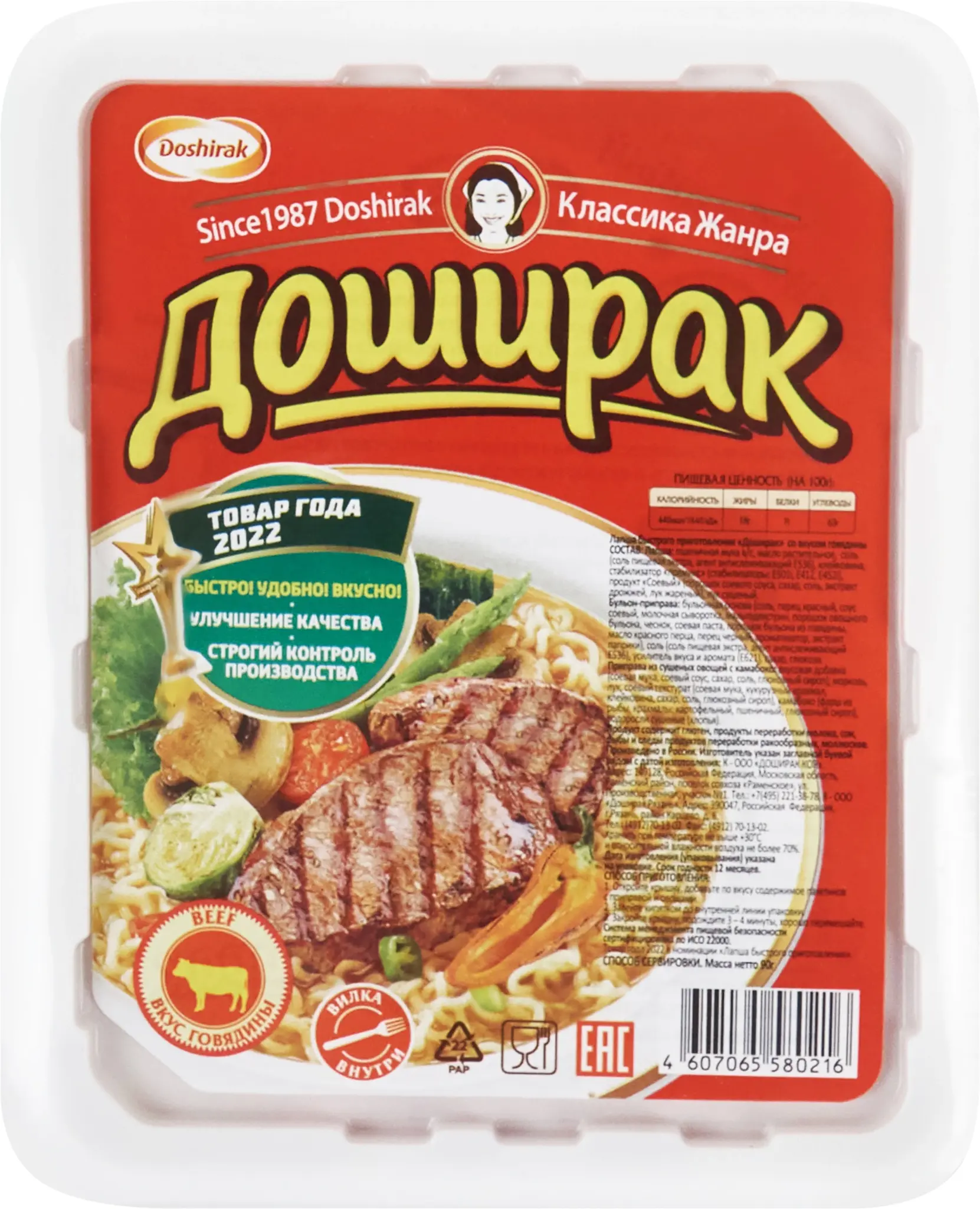 Попробуйте лапшу быстрого приготовления DOSHIRAK со вкусом говядины – идеальное решение для тех, кто ценит вкус и экономию времени. Всего несколько минут – и сытный обед готов!