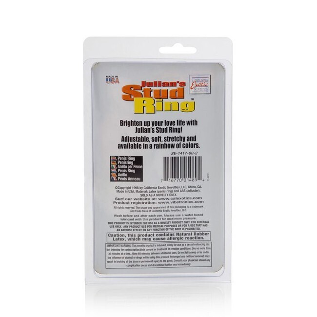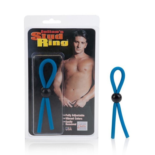 Кольцо эрекционное регулируемое «Julian's Stud Ring», латекс/пластик, синий цвет