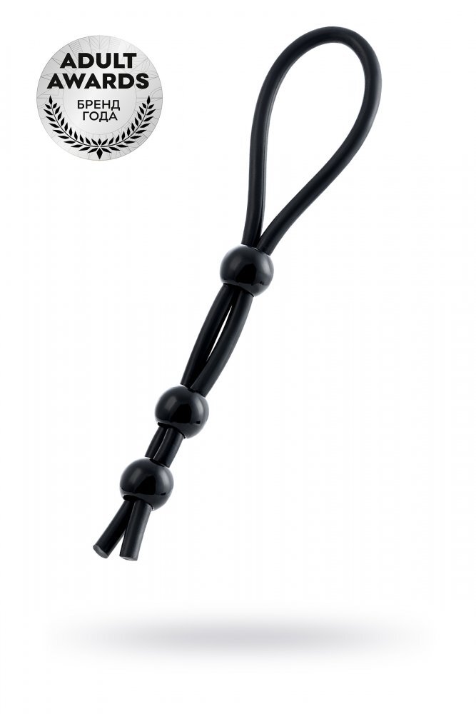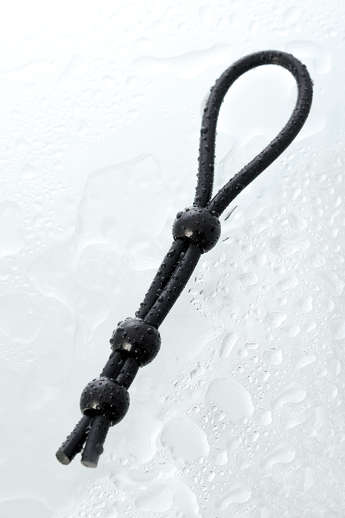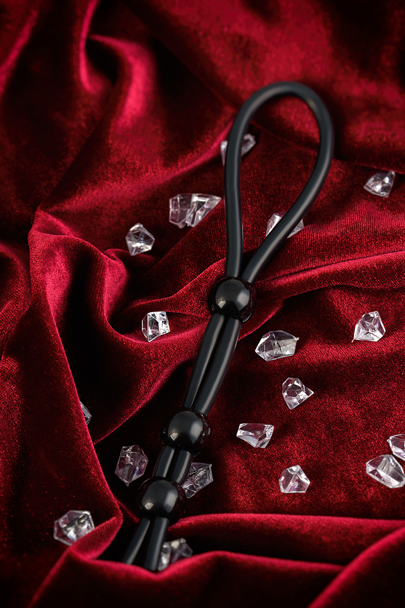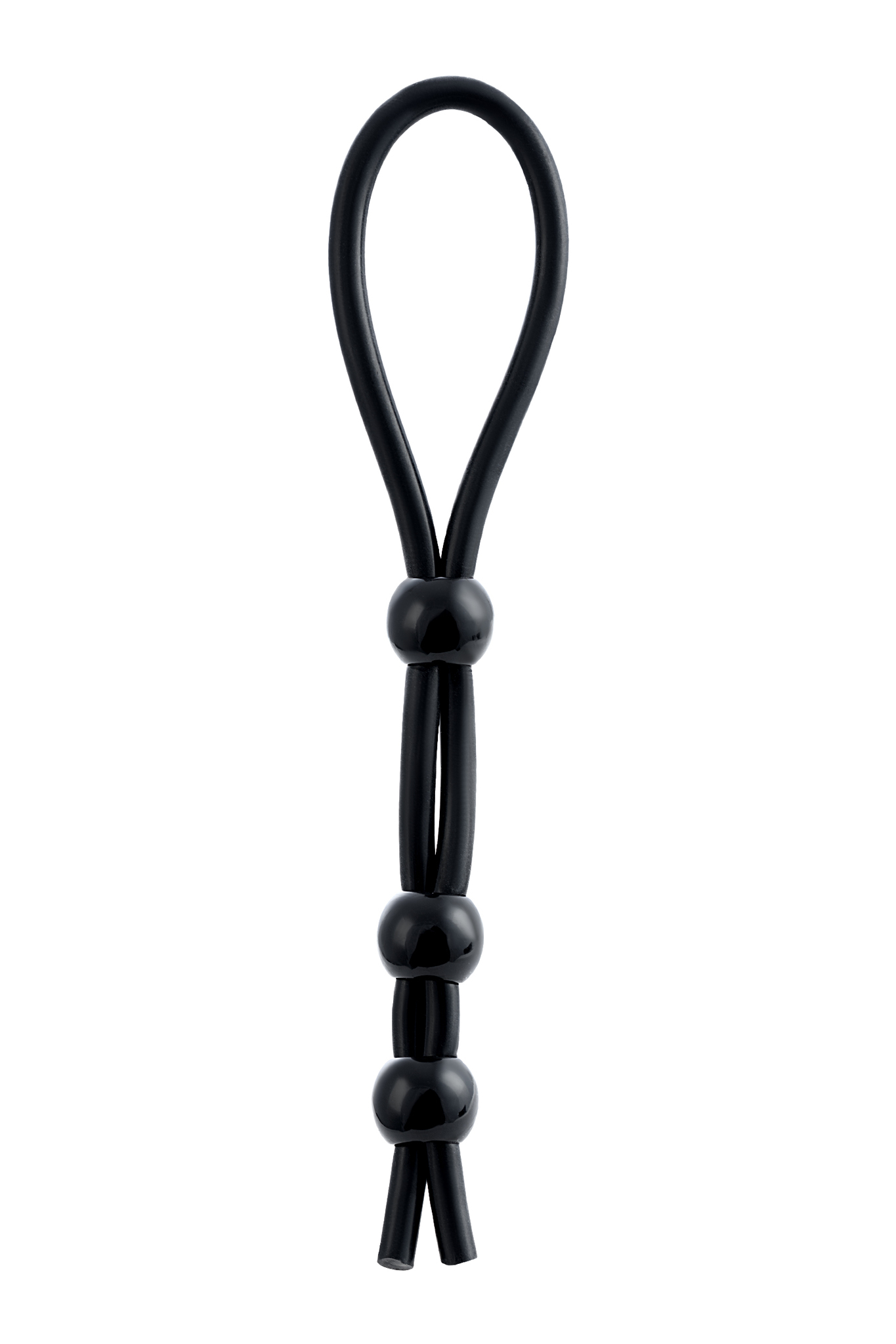 Эрекционное лассо с 3 регулируемыми бусинами, силикон, черное, 19,5 см — комфорт и надежная фиксация